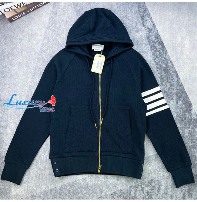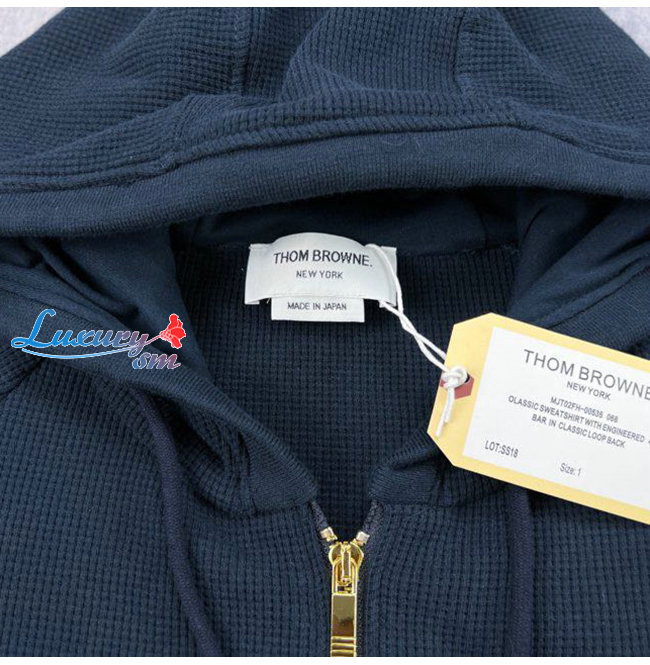 THOM BROWNE-08128 톰 브라운 네이비 스트라이프 장식 후드 재킷 남여공용