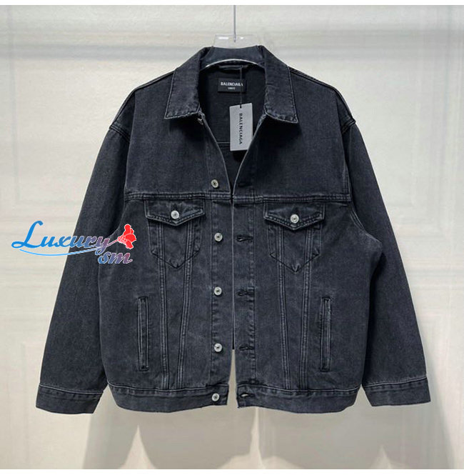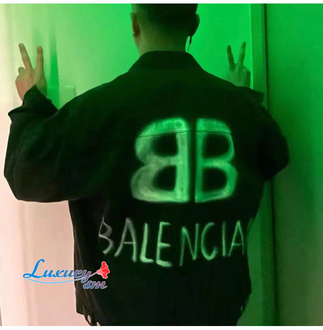 BALENCIAGA-08198 발렌시아가 블랙 프린트 장식 야광 데님 재킷 남여공용