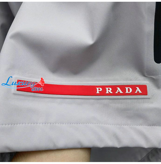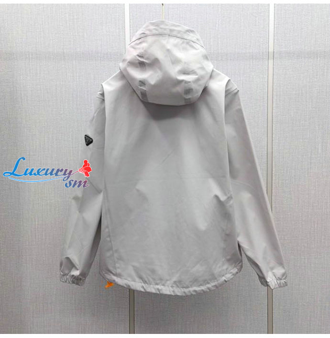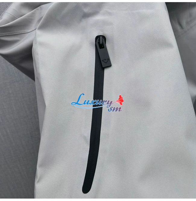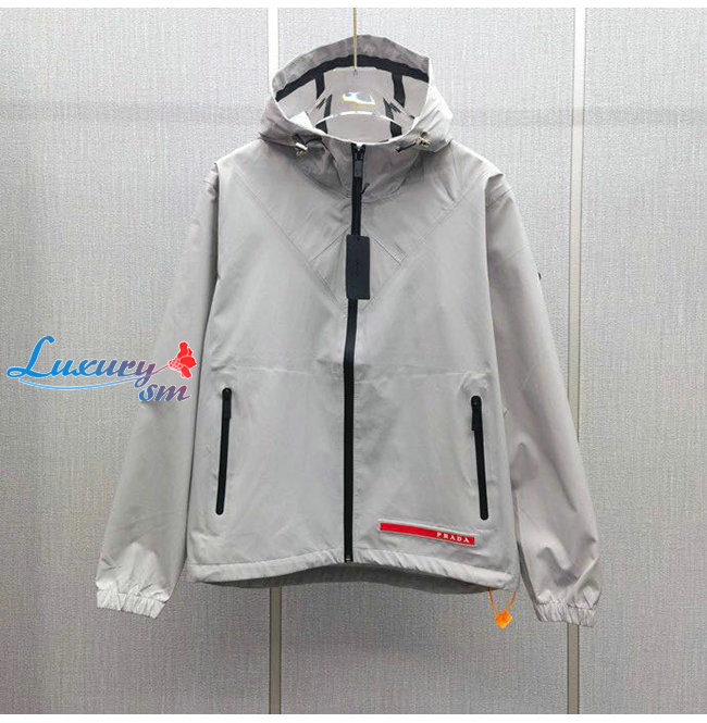 PRADA-08242 프라다 그레이 트라이앵글 로고 바람막이 후드 재킷 남성용