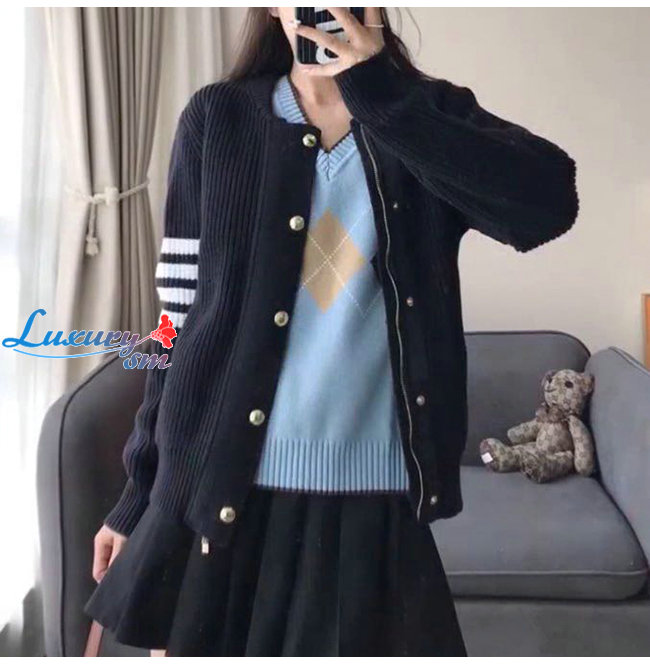 THOM BROWNE-08024 톰 브라운 블랙 스트라이프 장식 가디건 남여공용