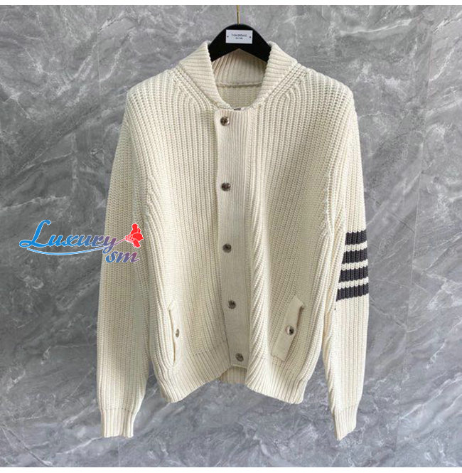THOM BROWNE-08025 톰 브라운 화이트 스트라이프 장식 가디건 남여공용