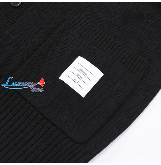 THOM BROWNE-08315 톰 브라운 블랙 스트라이프 장식 가디건 남여공용