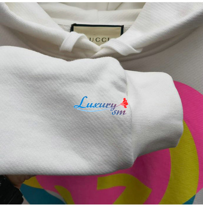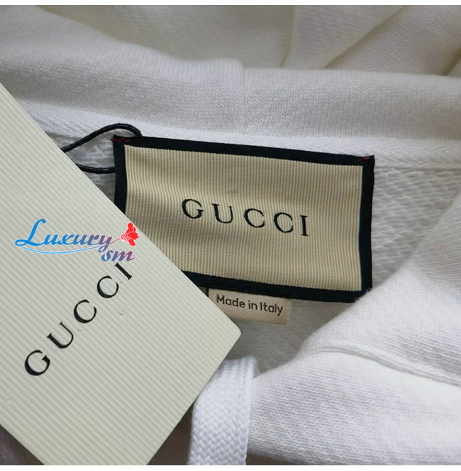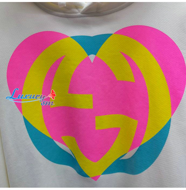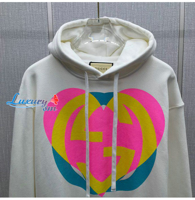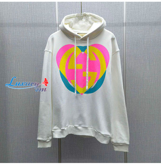 GUCCI-09019 구찌 화이트 인터로킹 G 하트 프린트 장식 후드 티셔츠 남여공용