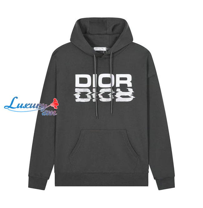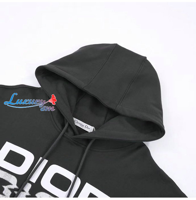 DIOR-09058 디올 차콜 그레이 프린트 장식 후드 티셔츠 남여공용