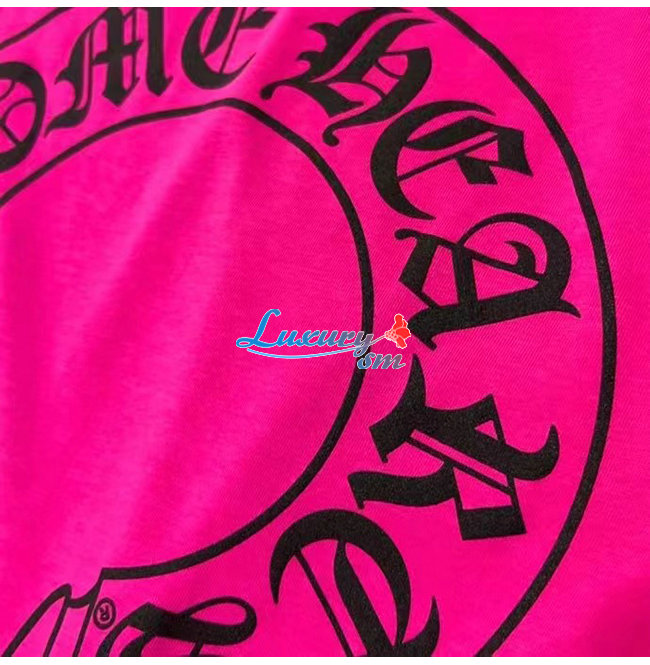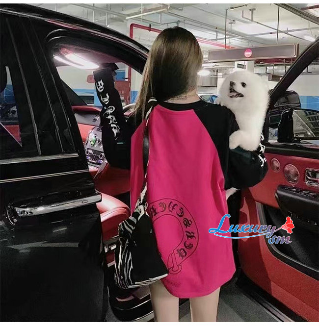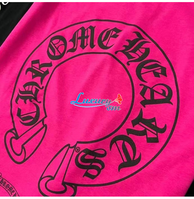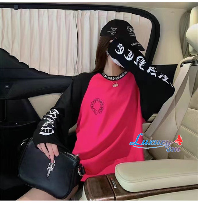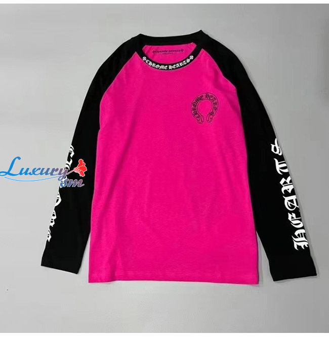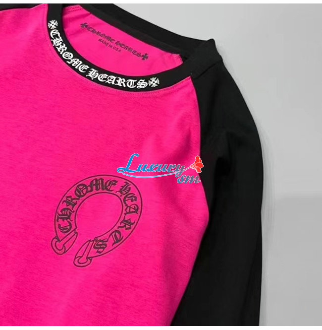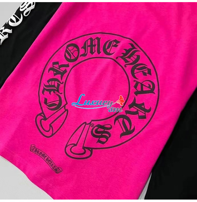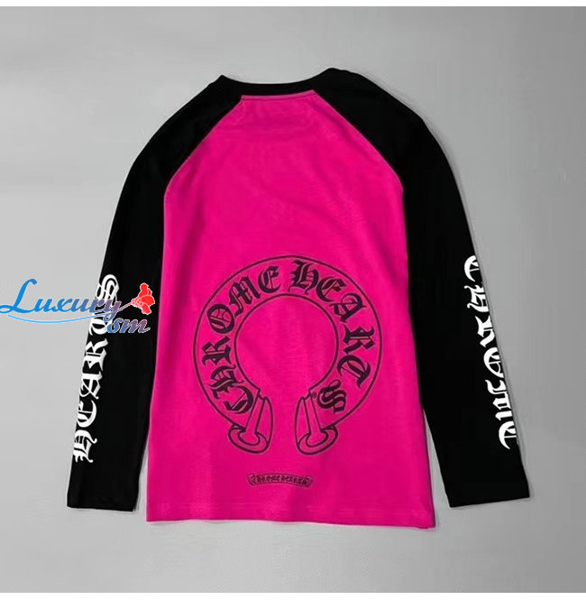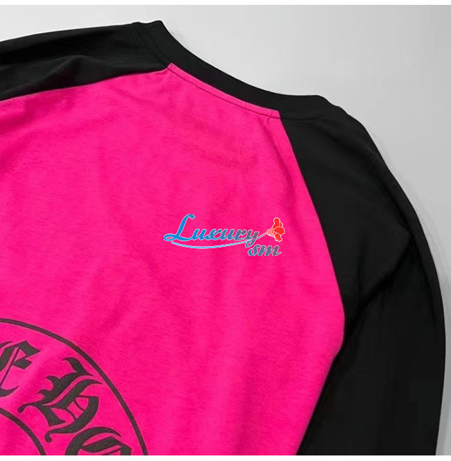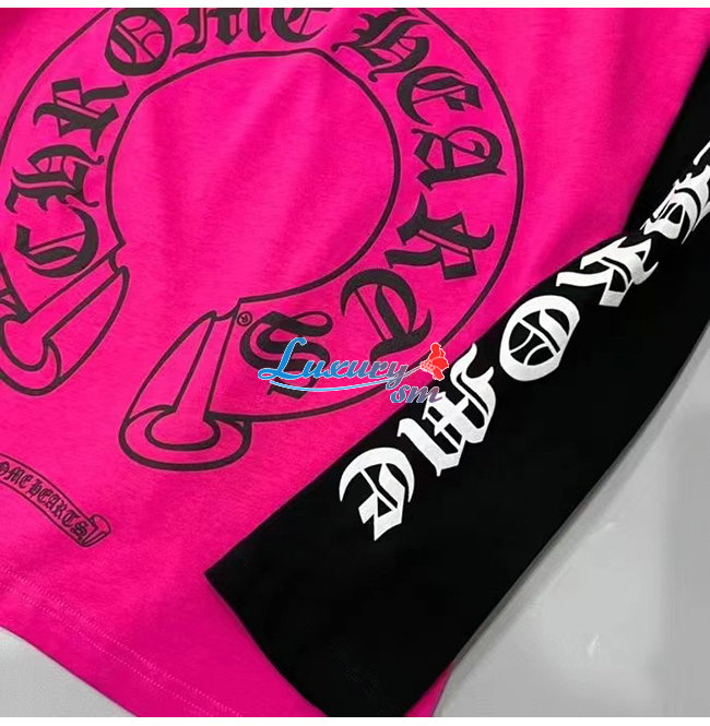 CHROMEHEARTS-09145 크롬하츠 블랙/핫핑크 프린트 장식 긴팔 티셔츠 남여공용