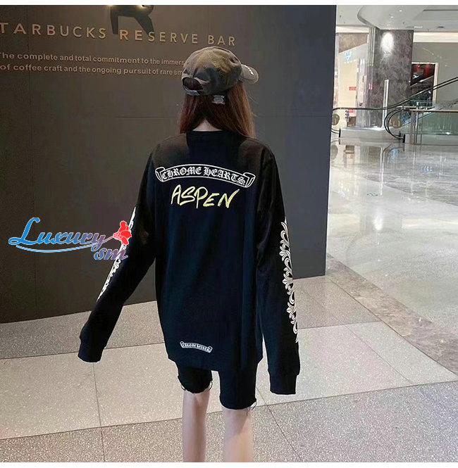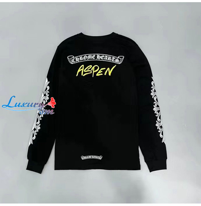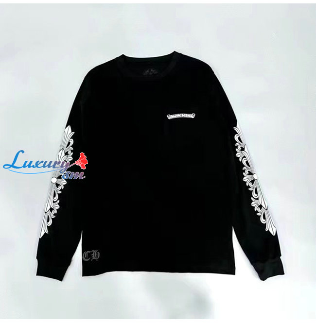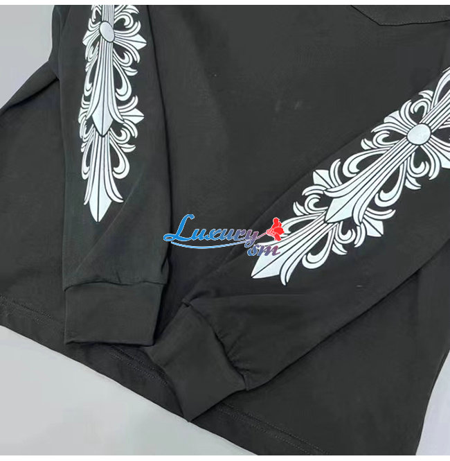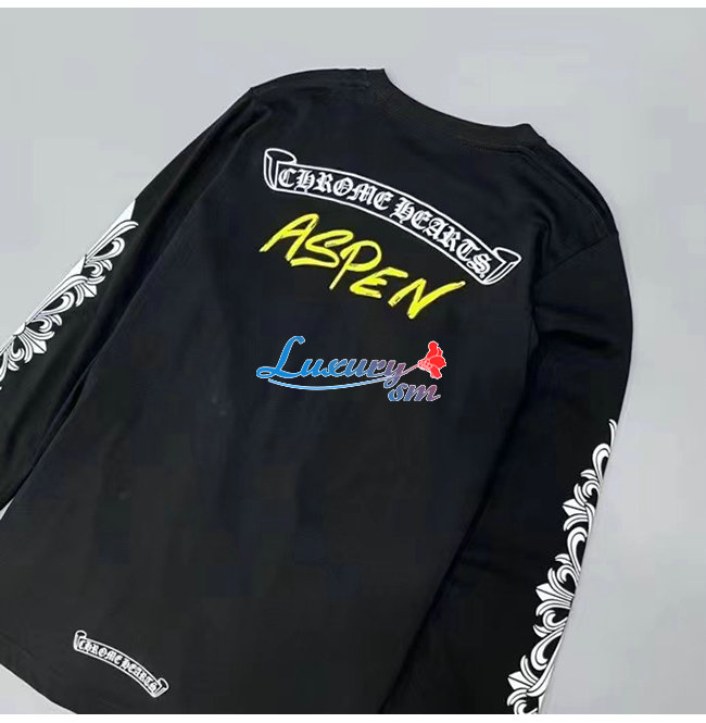 CHROMEHEARTS-09114 크롬하츠 블랙 프린트 장식 긴팔 티셔츠 남여공용