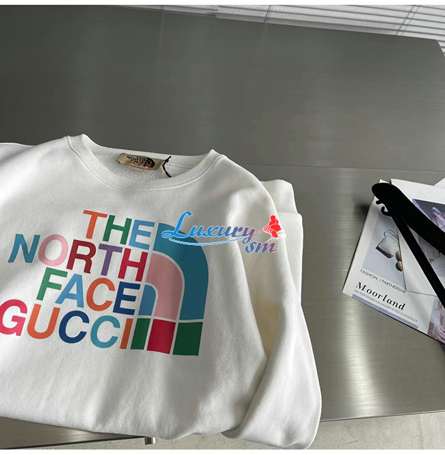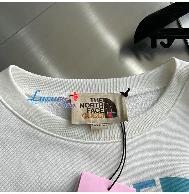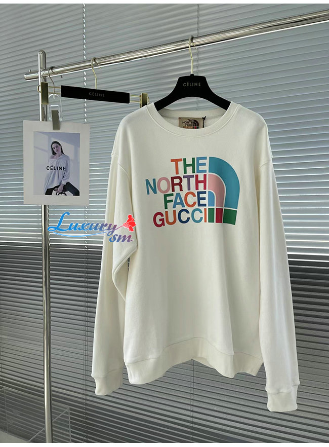 GUCCI-10195 구찌 화이트 구찌 X 노스페이스 콜라보 프린트 장식 스웨트셔츠 남여공용