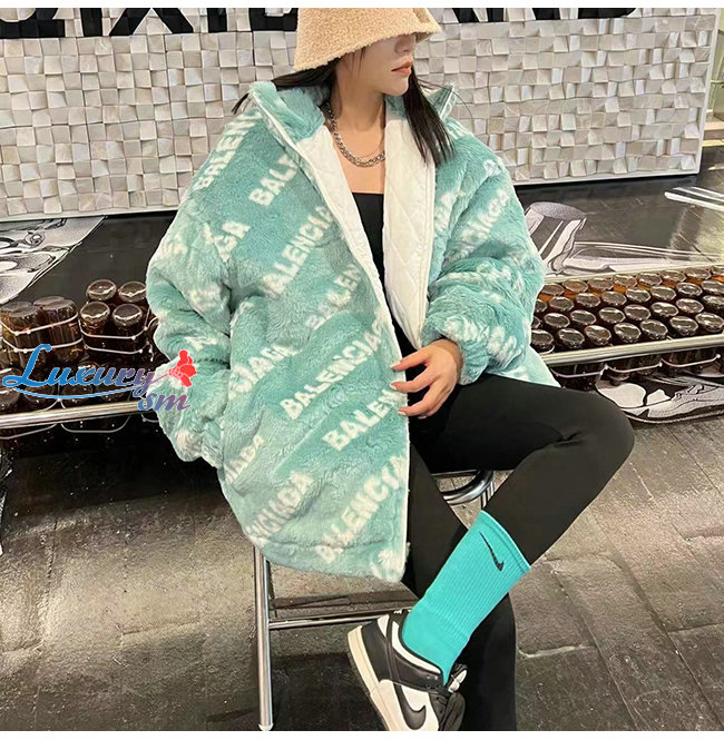 BALENCIAGA-11025 발렌시아가 민트 그린 시어링 재킷 남여공용