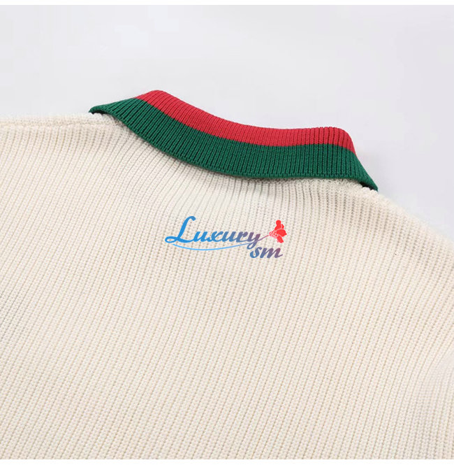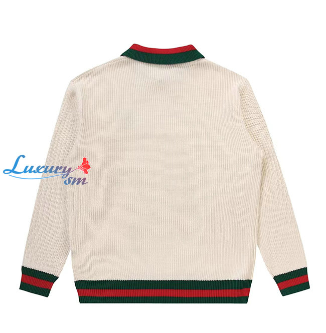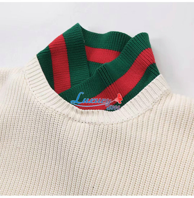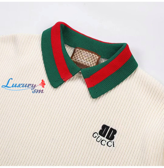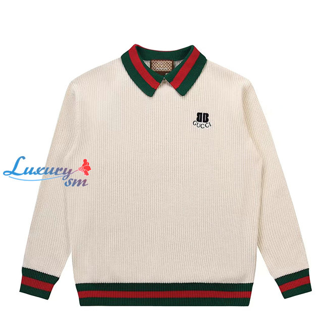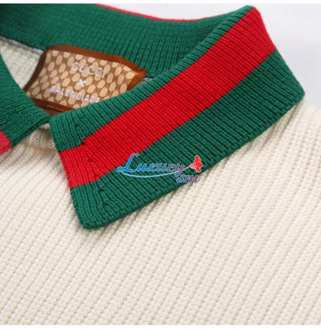 GUCCI-11153 구찌 아이보리 구찌 X 발렌시아가 콜라보 Web 스트라이프 장식 폴로 스웨터 남여공용