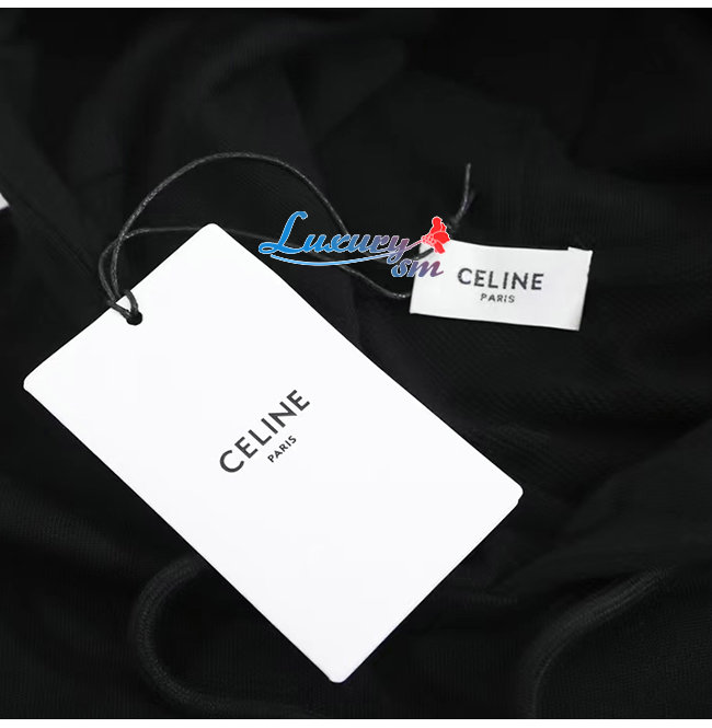 CELINE-12224 셀린느 블랙 코튼 후드 티셔츠 남여공용