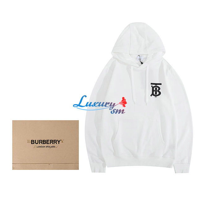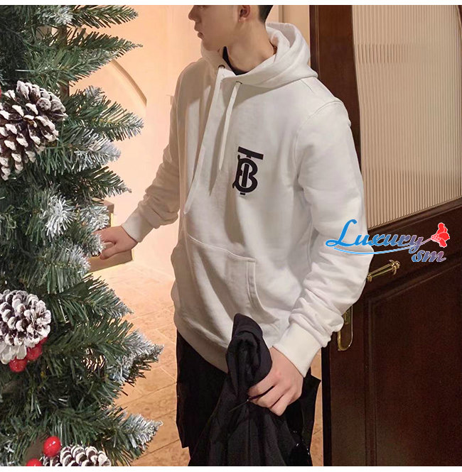 BURBERRY-12225 버버리 화이트 TB 로고 프린트 장식 후드 티셔츠 남여공용
