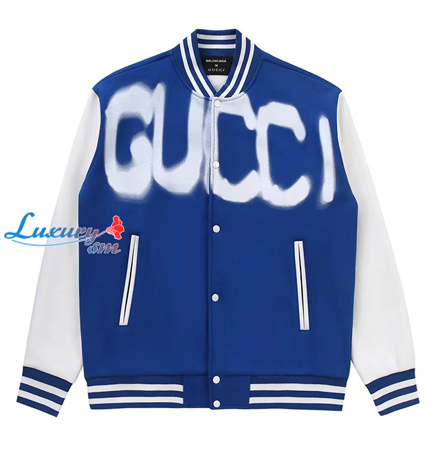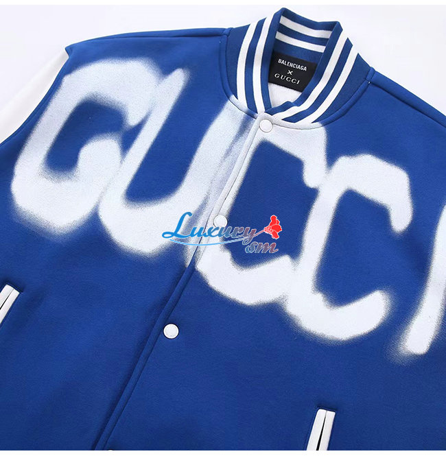 GUCCI-12261 구찌 블루 구찌 X 발렌시아가 콜라보 프린트 장식 베이스볼 재킷 남여공용