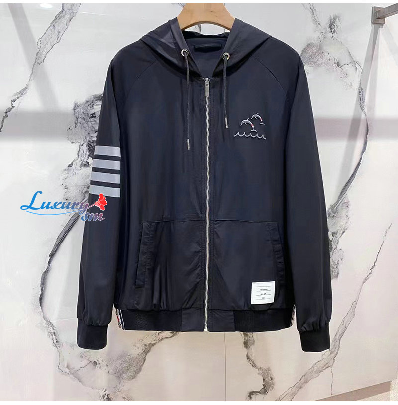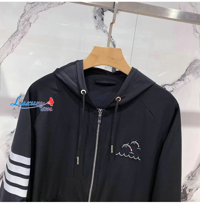 THOM BROWNE-02144 톰 브라운 블랙 스트라이프 장식 바람막이 재킷 남성용