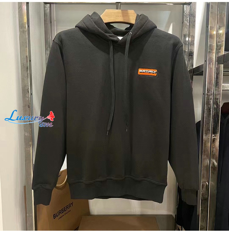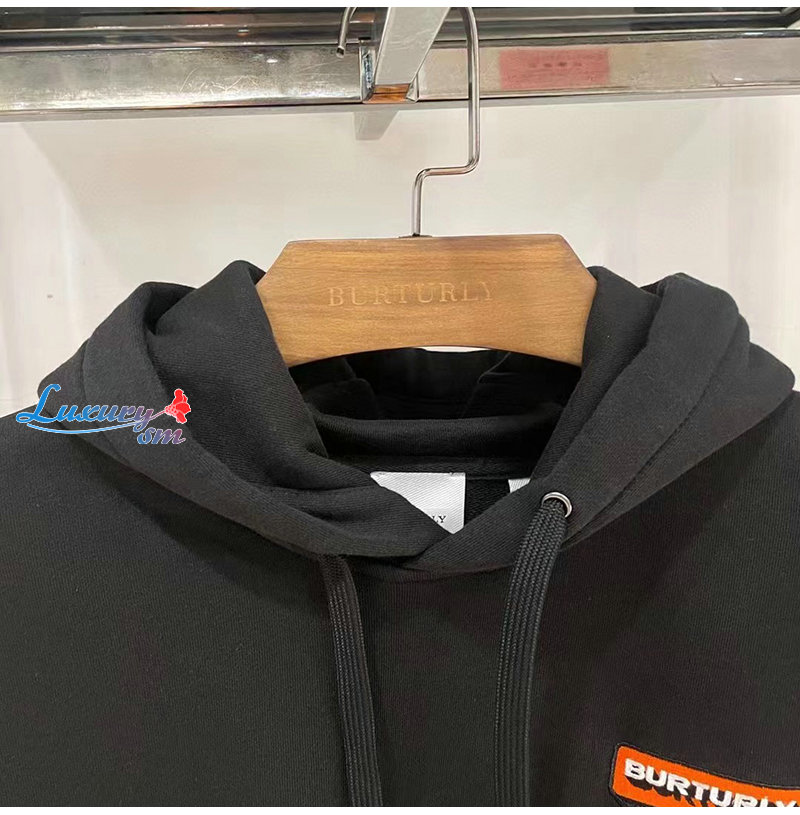 BURBERRY-02211 버버리 블랙 아플리케 디테일 후드 티셔츠 남여공용