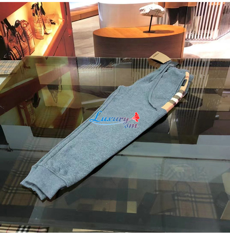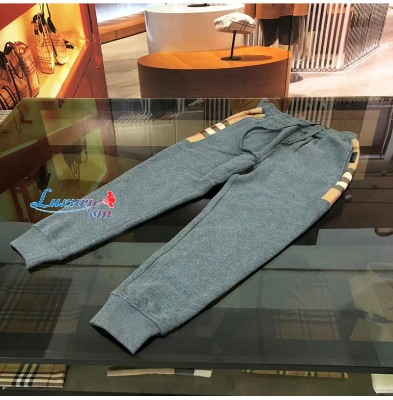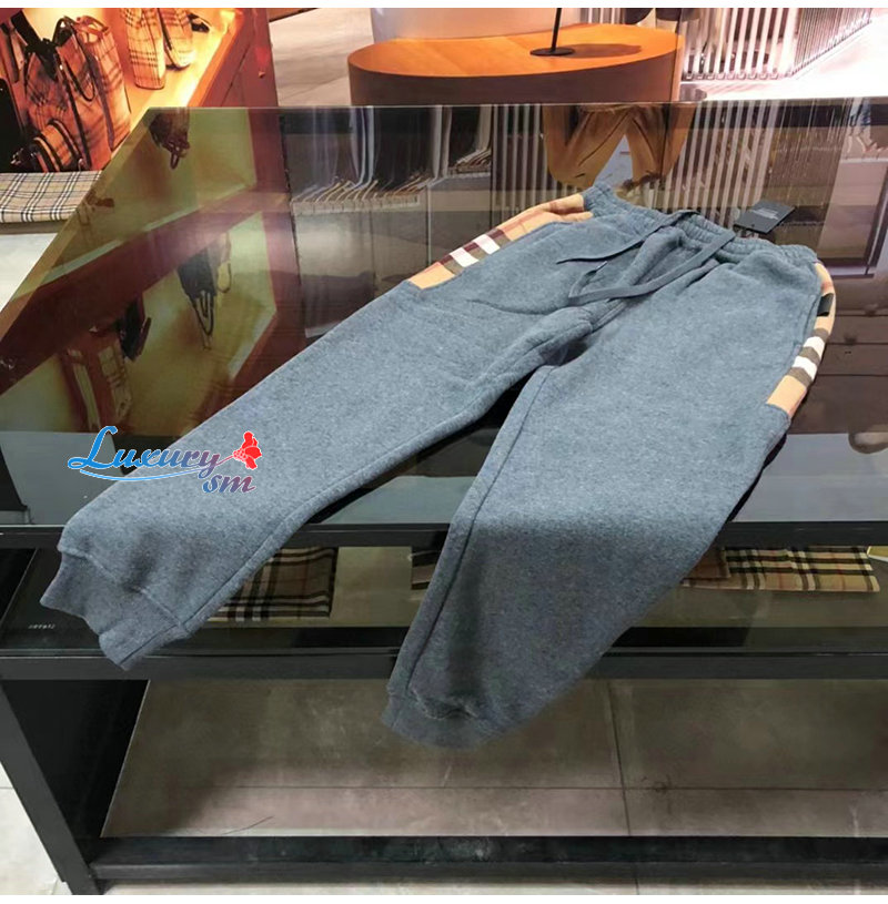 BURBERRY-80590661 버버리 라이트 그레이 체크 패널 코튼 조깅 팬츠 남성용 가격 : 160,000원