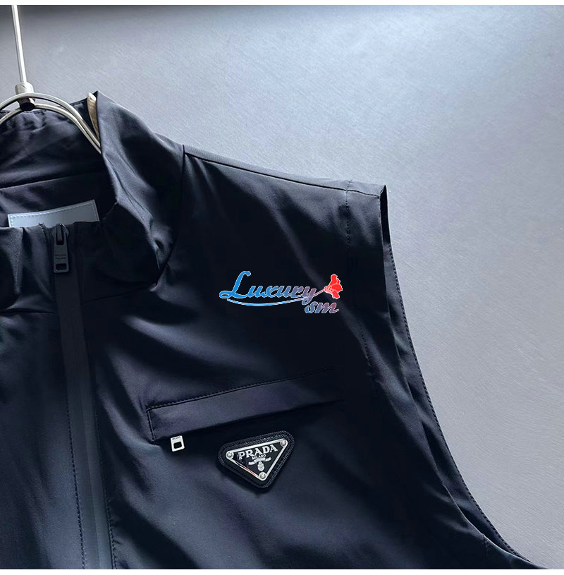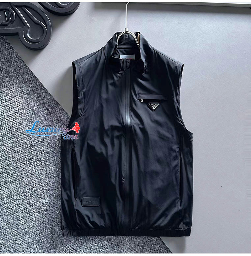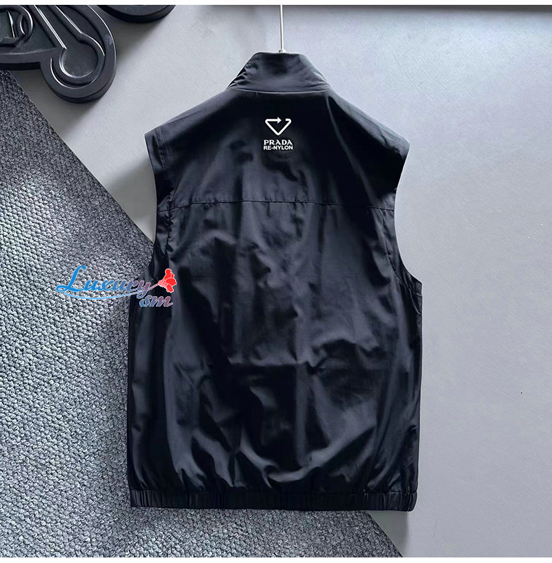 PRADA-022614 프라다 블랙 트라이앵글 로고 바람막이 조끼 남성용
