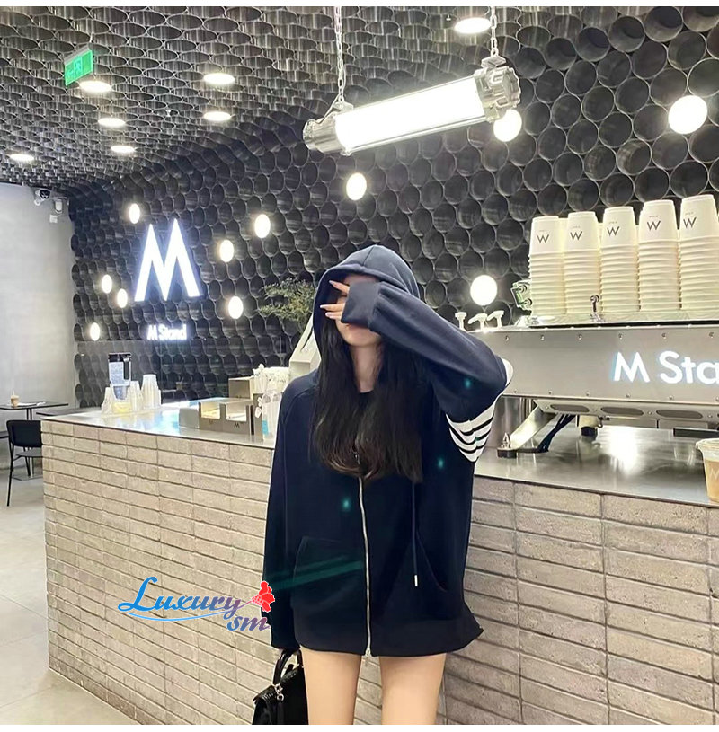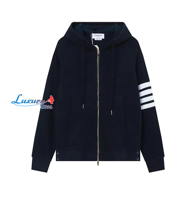THOM BROWNE-03016 톰 브라운 네이비 스트라이프 장식 후드 재킷 남여공용