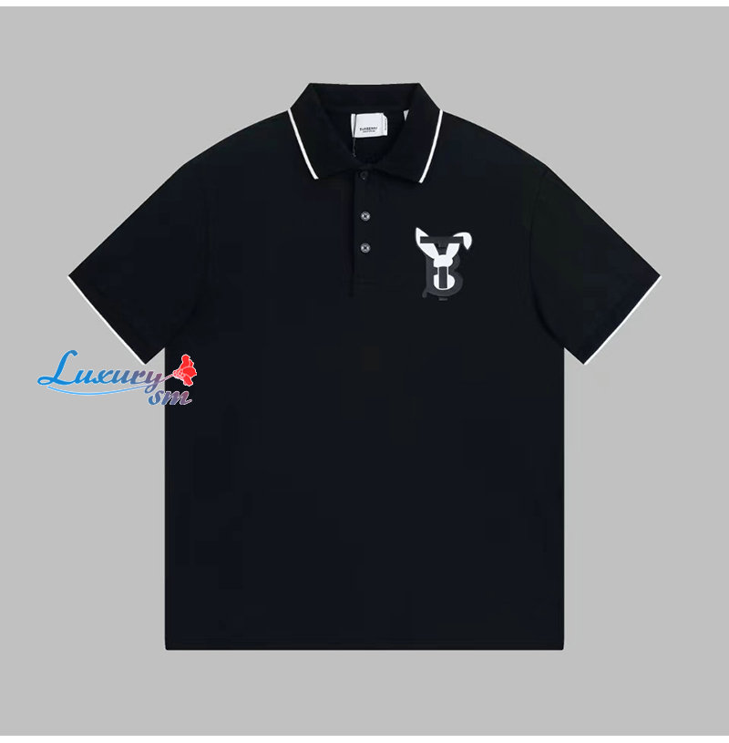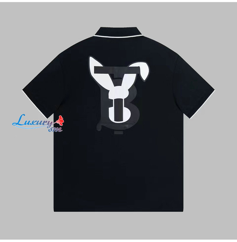 BURBERRY-80635251 버버리 블랙 래빗 프린트 코튼 피케 폴로셔츠 남여공용