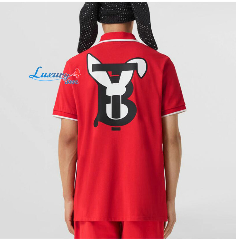 BURBERRY-80635251 버버리 레드 래빗 프린트 코튼 피케 폴로셔츠 남여공용