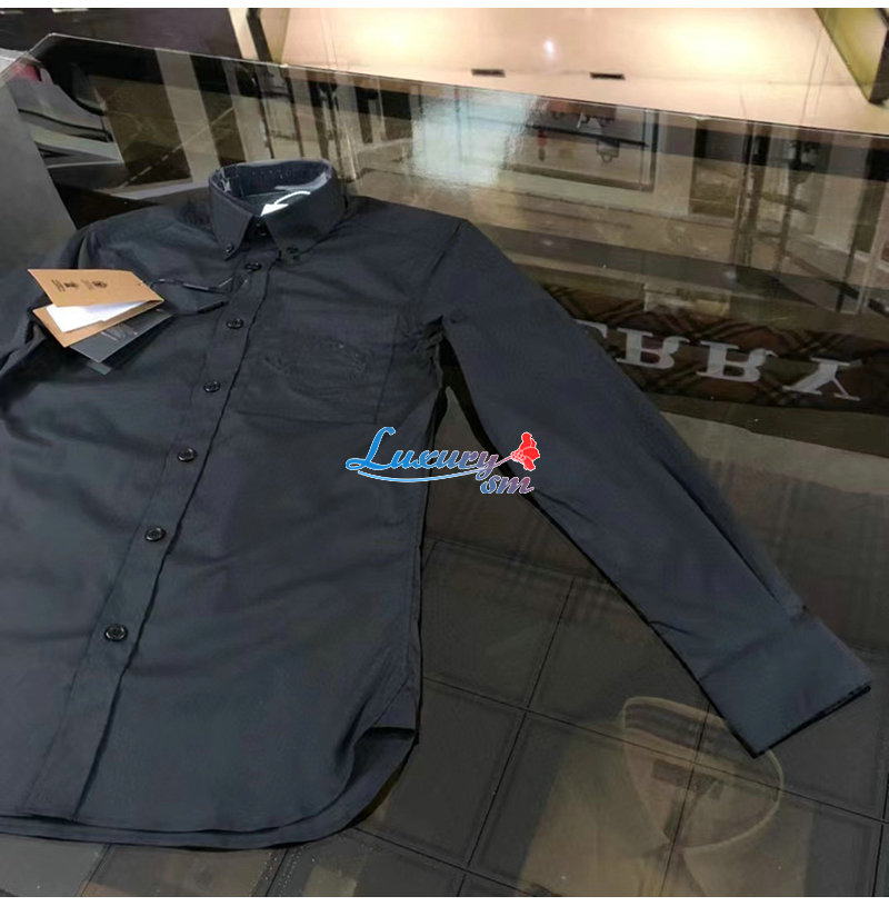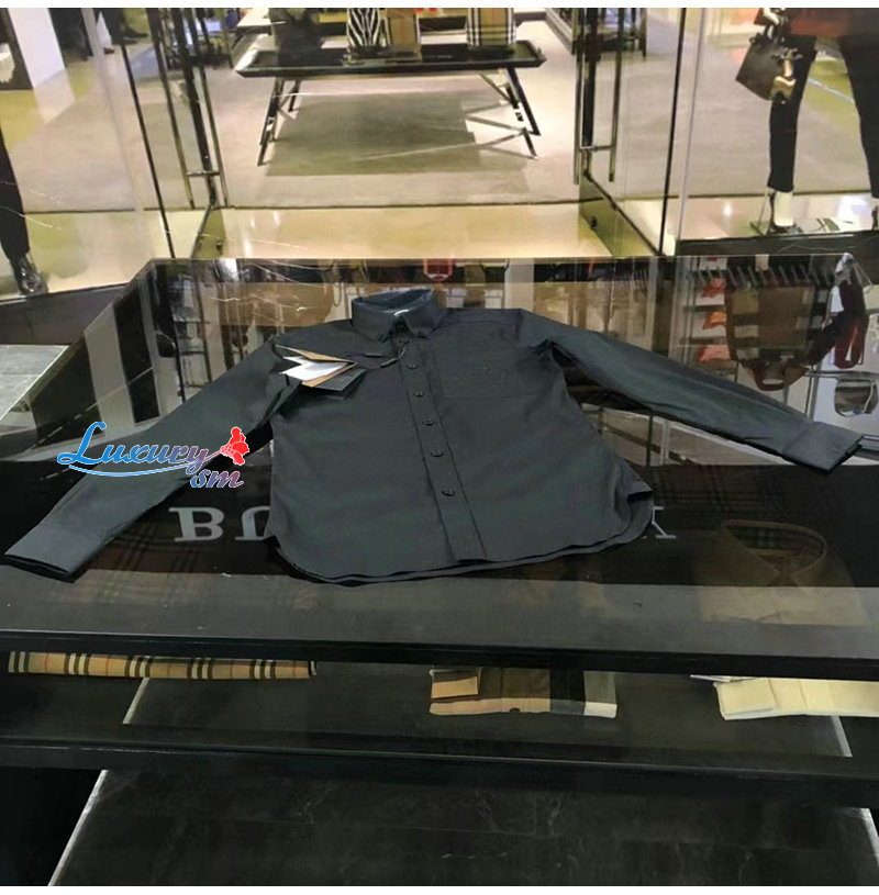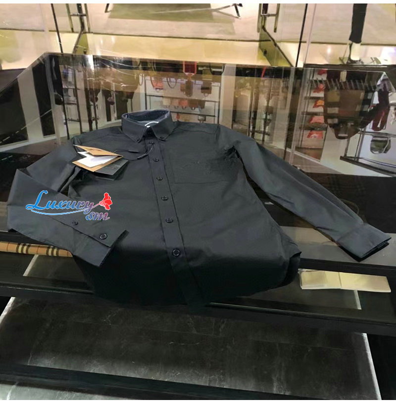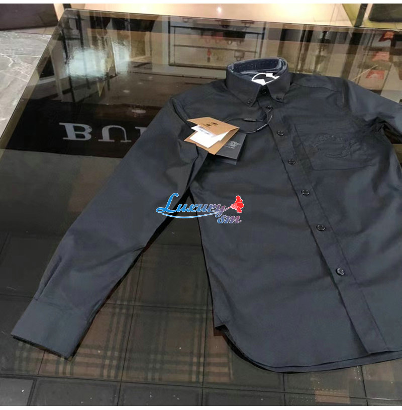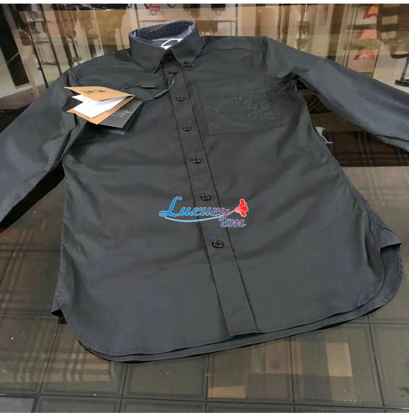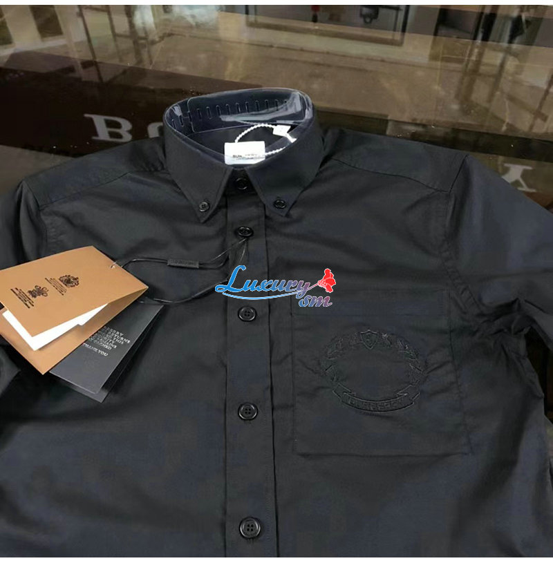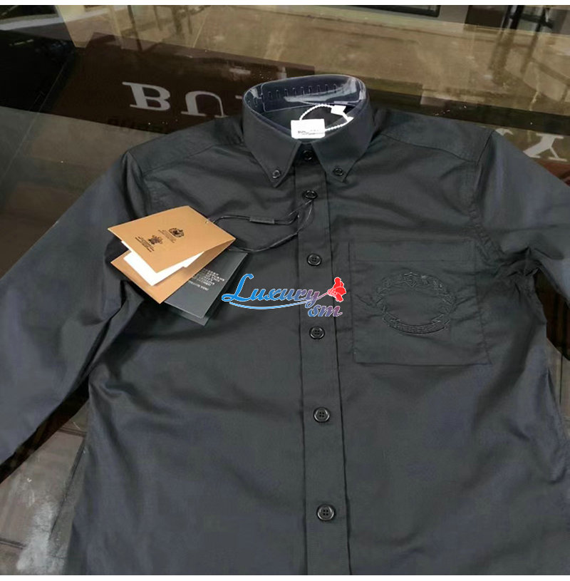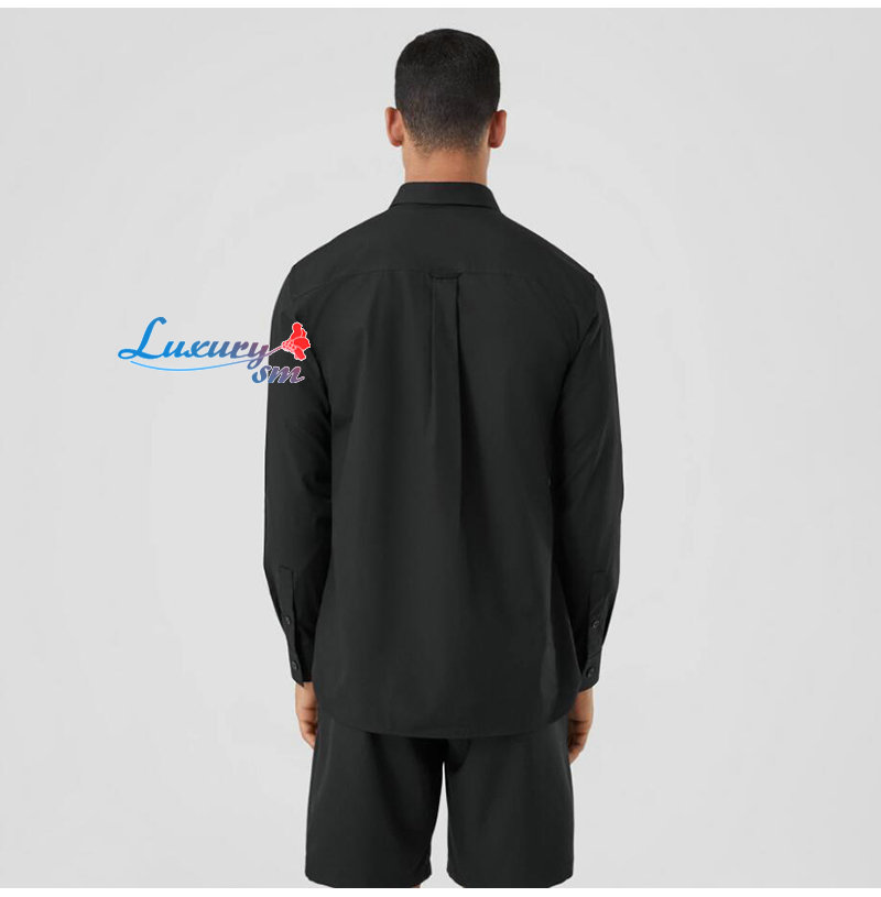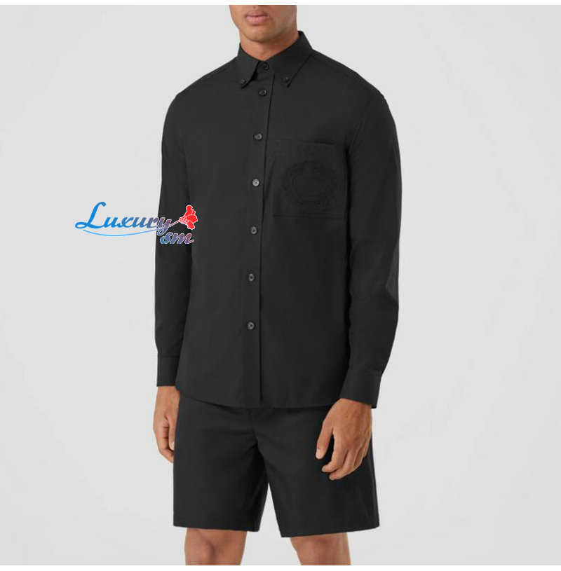 BURBERRY-80648731 버버리 블랙 엠브로이더리 오크 리프 크레스트 스트레치 셔츠 남성용