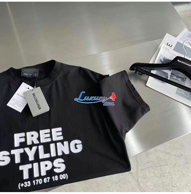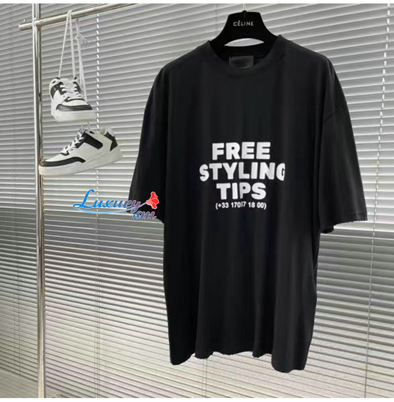 BALENCIAGA-05023 발렌시아가 블랙 프린트 장식 티셔츠 남여공용