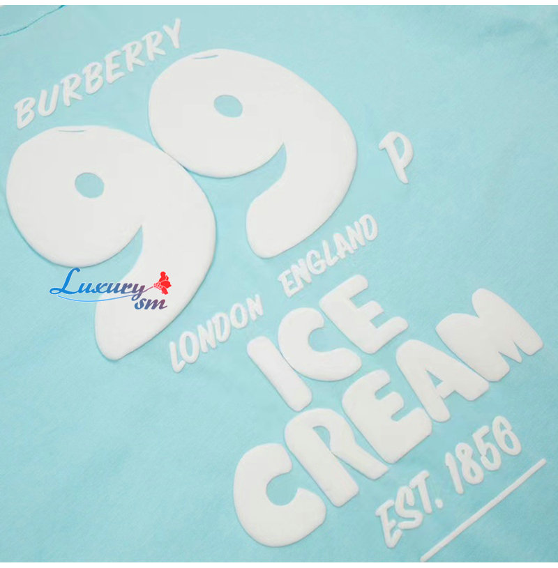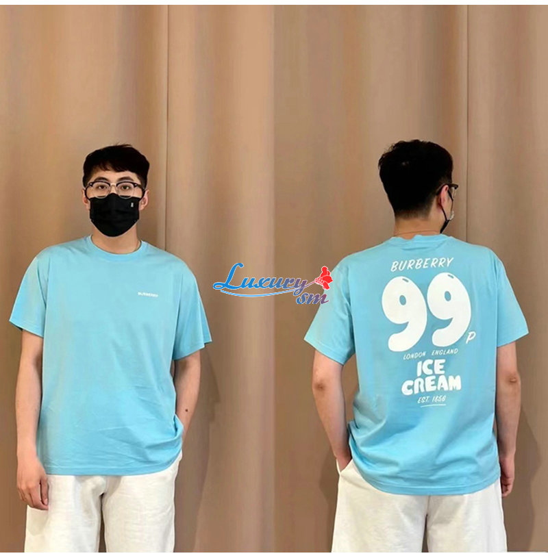 BURBERRY-05224 버버리 민트 블루 아플리케 장식 티셔츠 남여공용