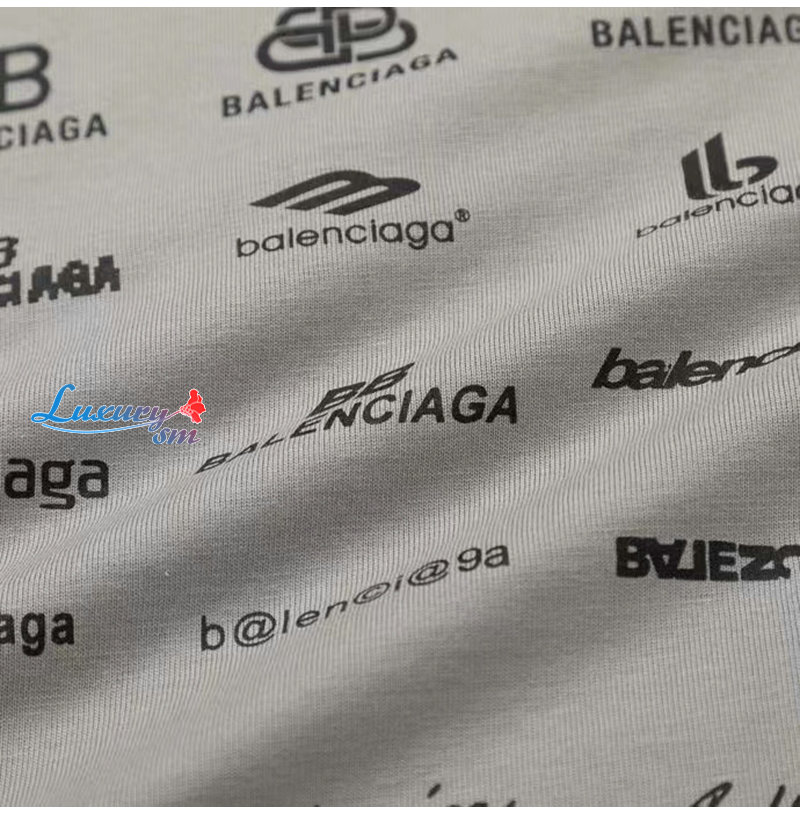 BALENCIAGA-05247 발렌시아가 아이보리 프린트 장식 티셔츠 남성용