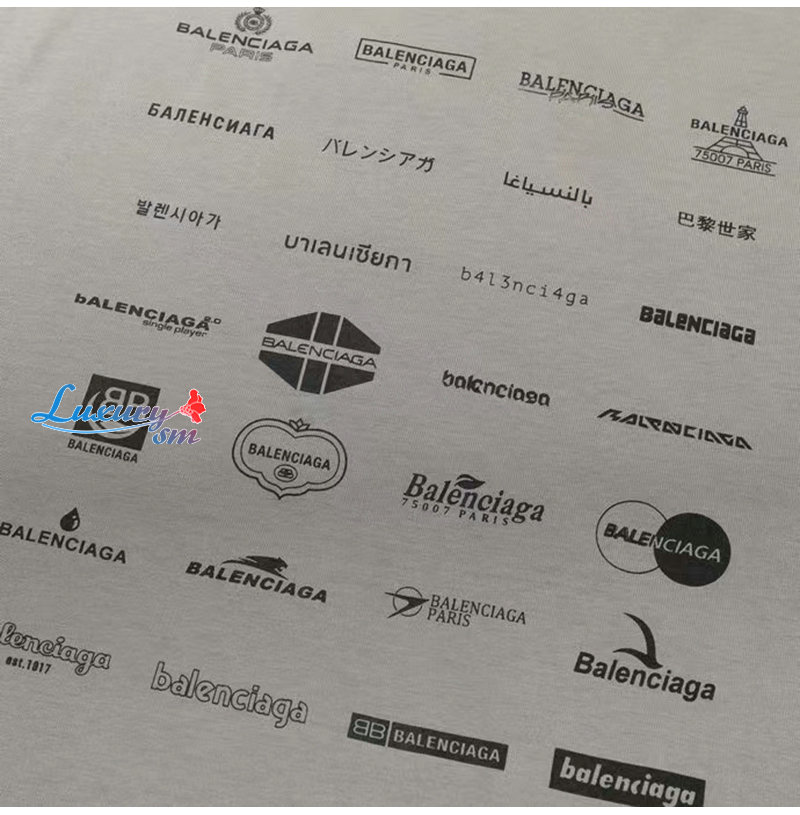 BALENCIAGA-05246 발렌시아가 그레이 프린트 장식 티셔츠 남성용