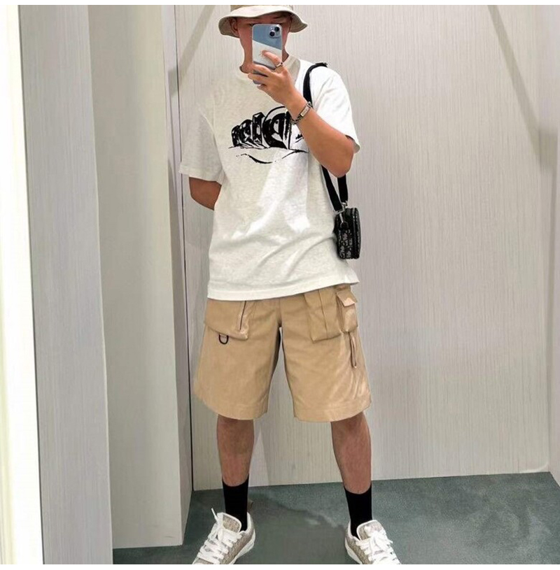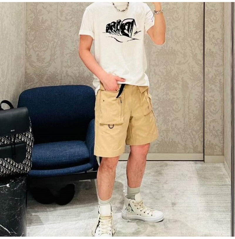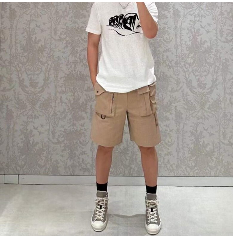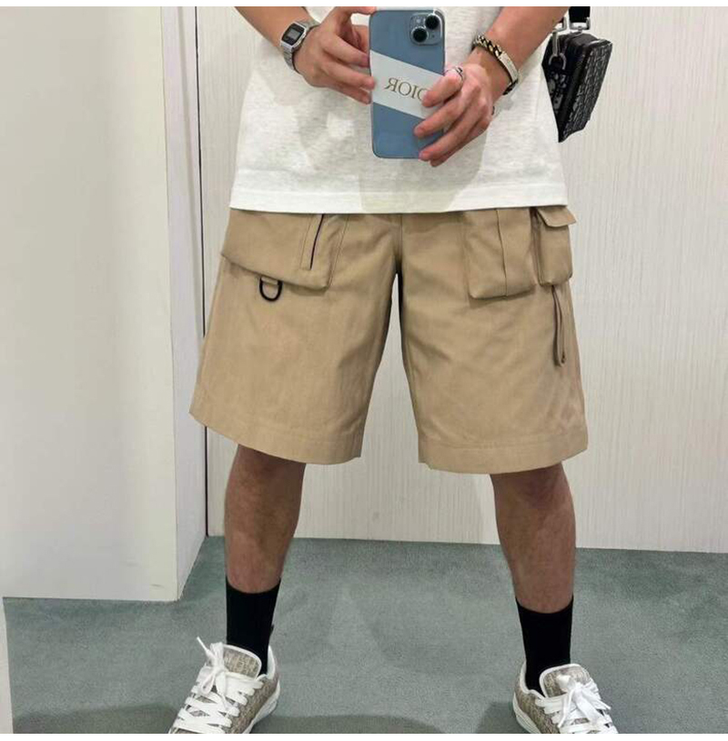 DIOR-393C1 디올 베이지 코튼 카고 버뮤다 쇼츠 반바지 남성용