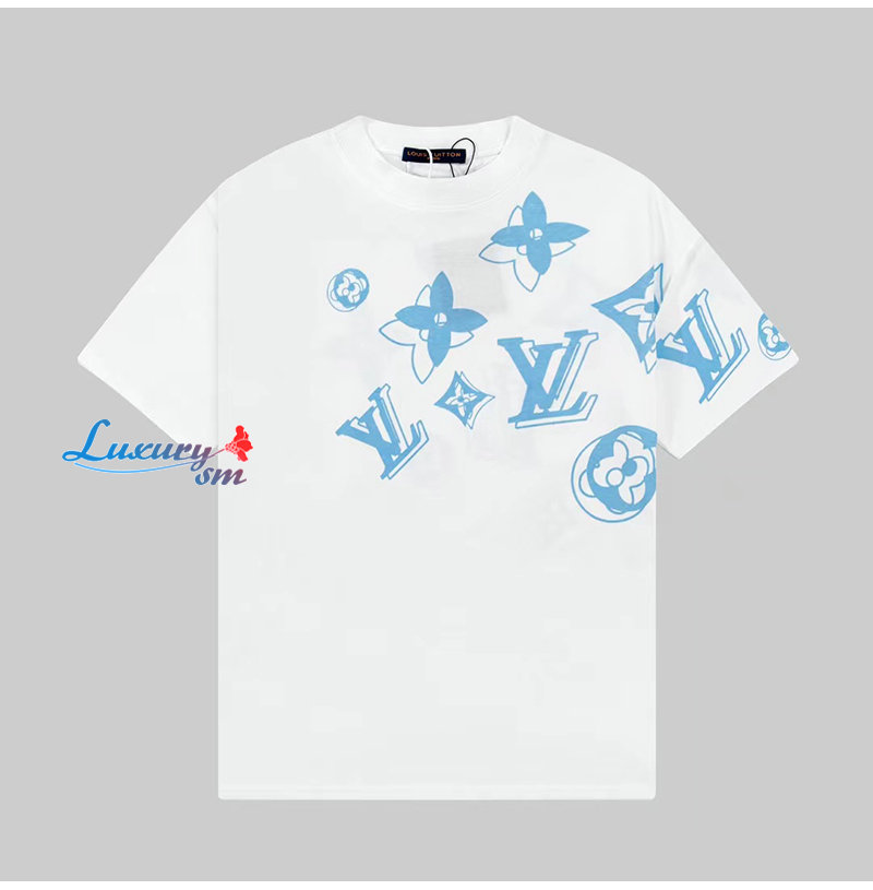 LOUIS VUITTON-06011 루이비통 화이트 모노그램 프린트 장식 티셔츠 남여공용