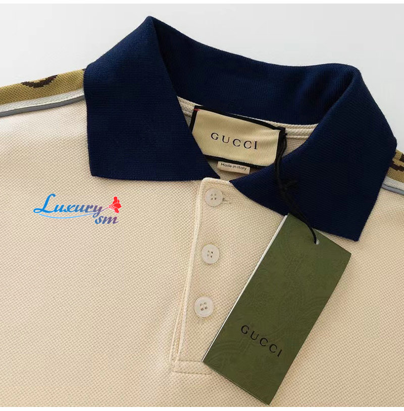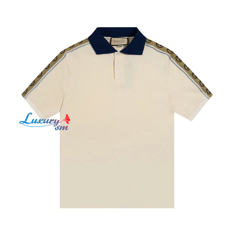 GUCCI-06088 구찌 아이보리 GG 스트라이프 장식 폴로 티셔츠 남성용