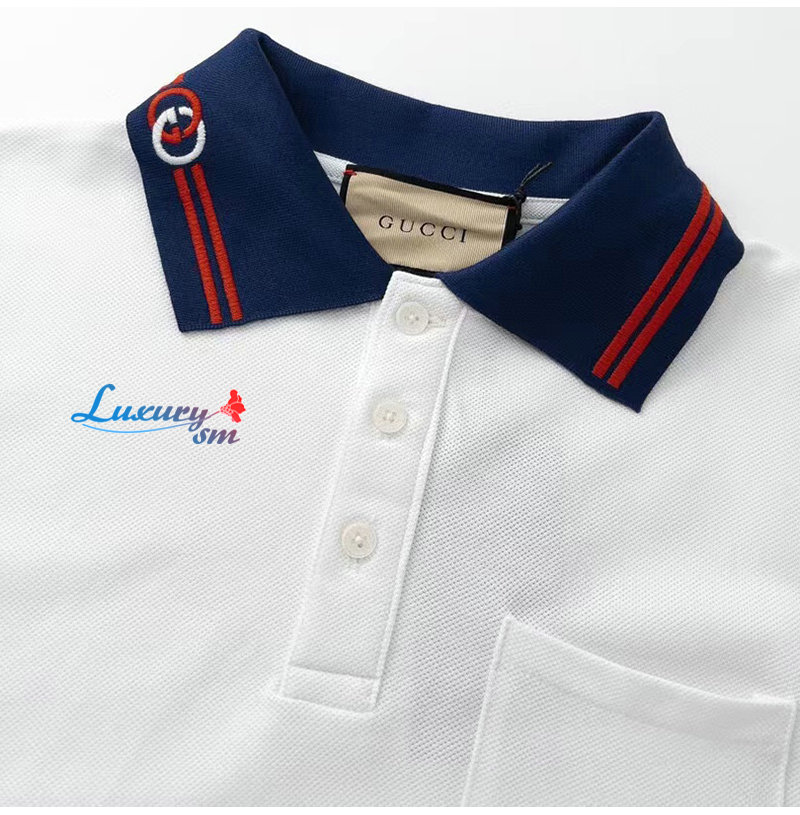 GUCCI-06082 구찌 화이트 스트라이프 장식 폴로 티셔츠 남성용