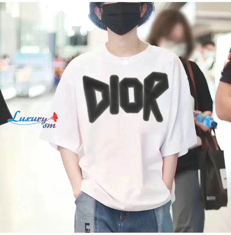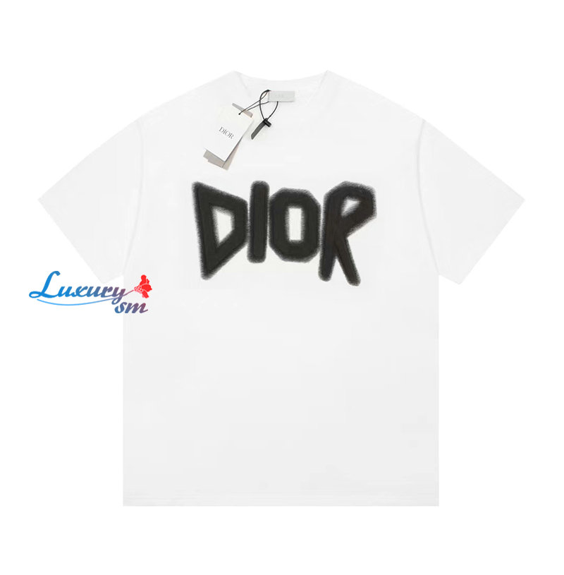 DIOR-06196 디올 화이트 DIOR 프린트 장식 티셔츠 남여공용