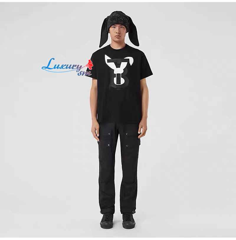 BURBERRY-06192 버버리 블랙 TB 로고 프린트 장식 티셔츠 남성용