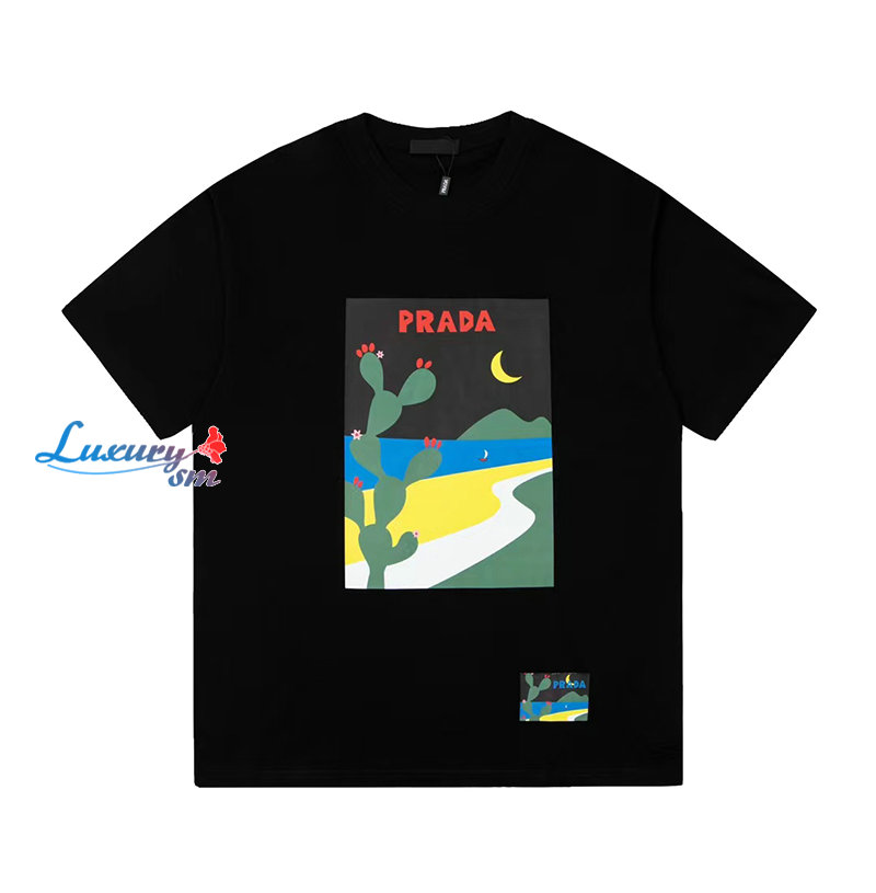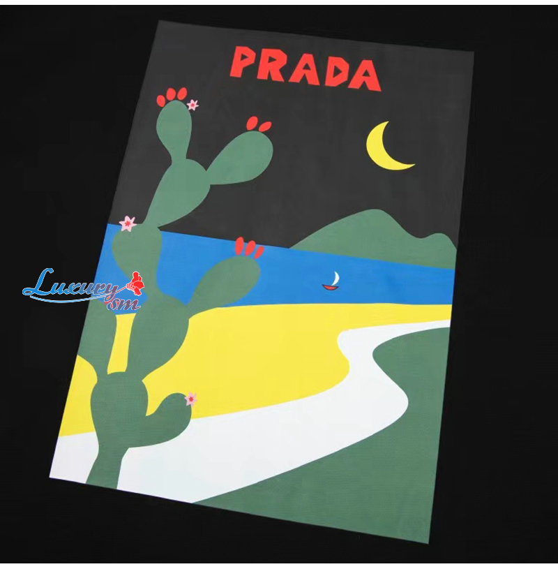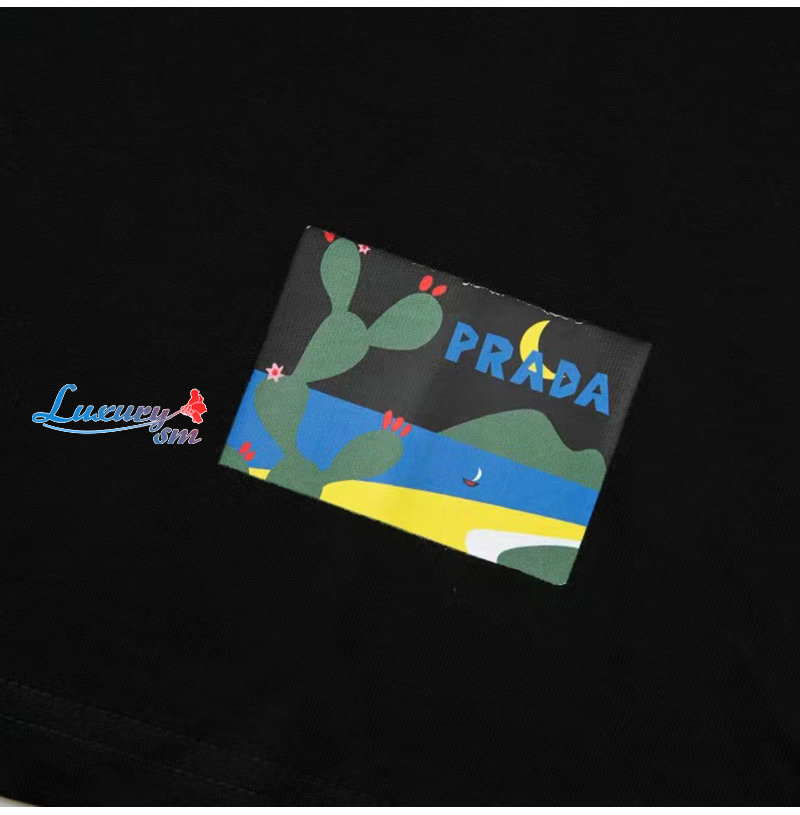 PRADA-07213 프라다 블랙 프린트 장식 티셔츠 남여공용