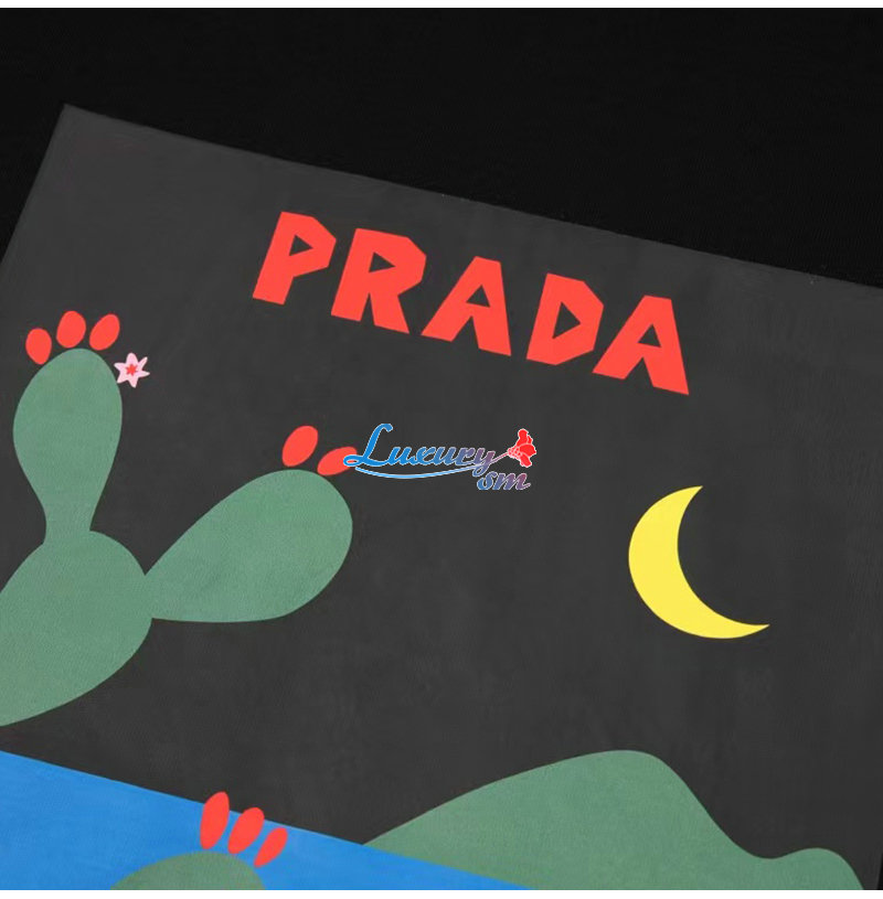 PRADA-07213 프라다 블랙 프린트 장식 티셔츠