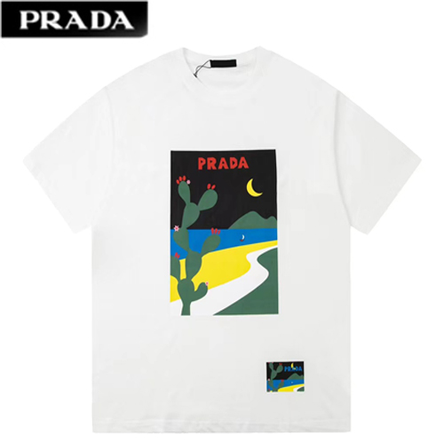 PRADA-07214 프라다 화이트 프린트 장식 티셔츠 남여공용