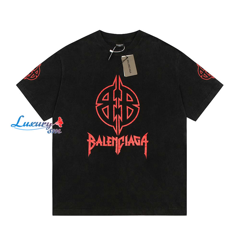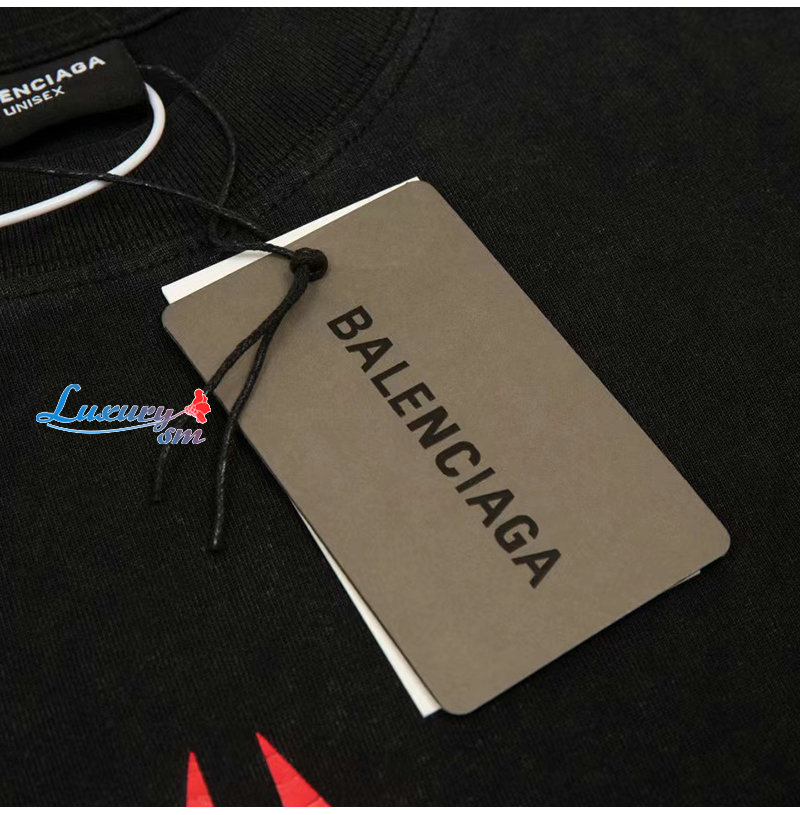 BALENCIAGA-07251 발렌시아가 블랙 프린트 장식 티셔츠 남여공용