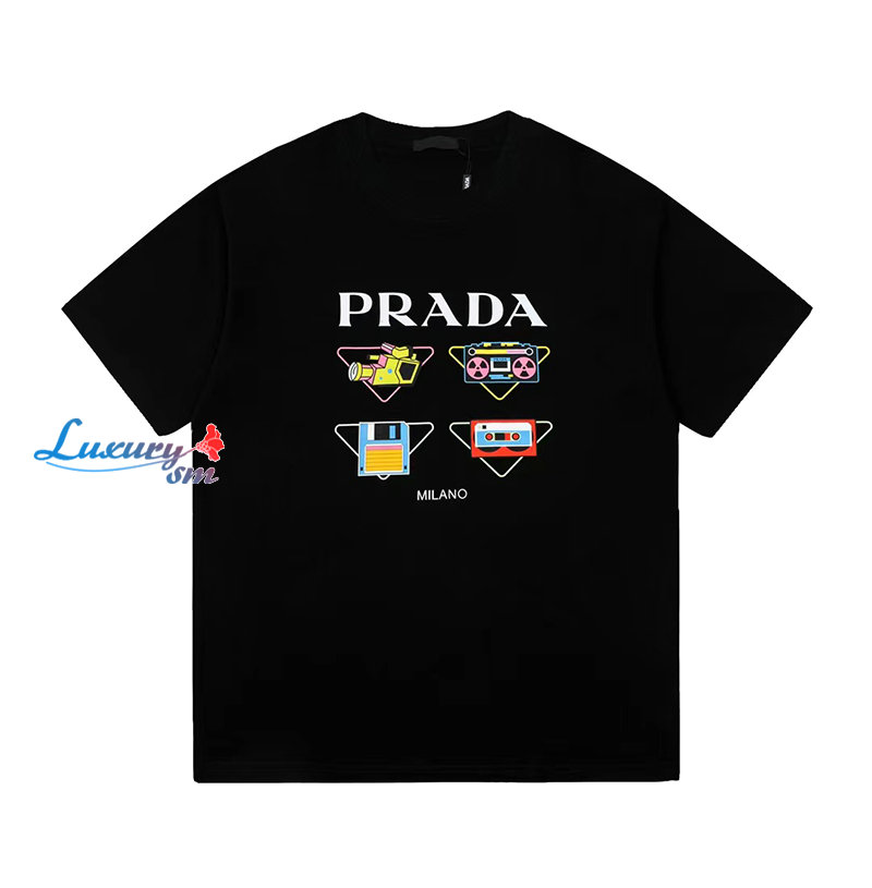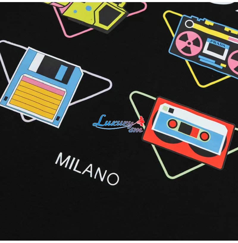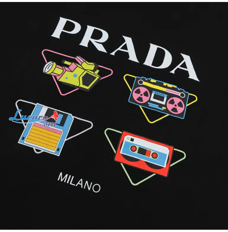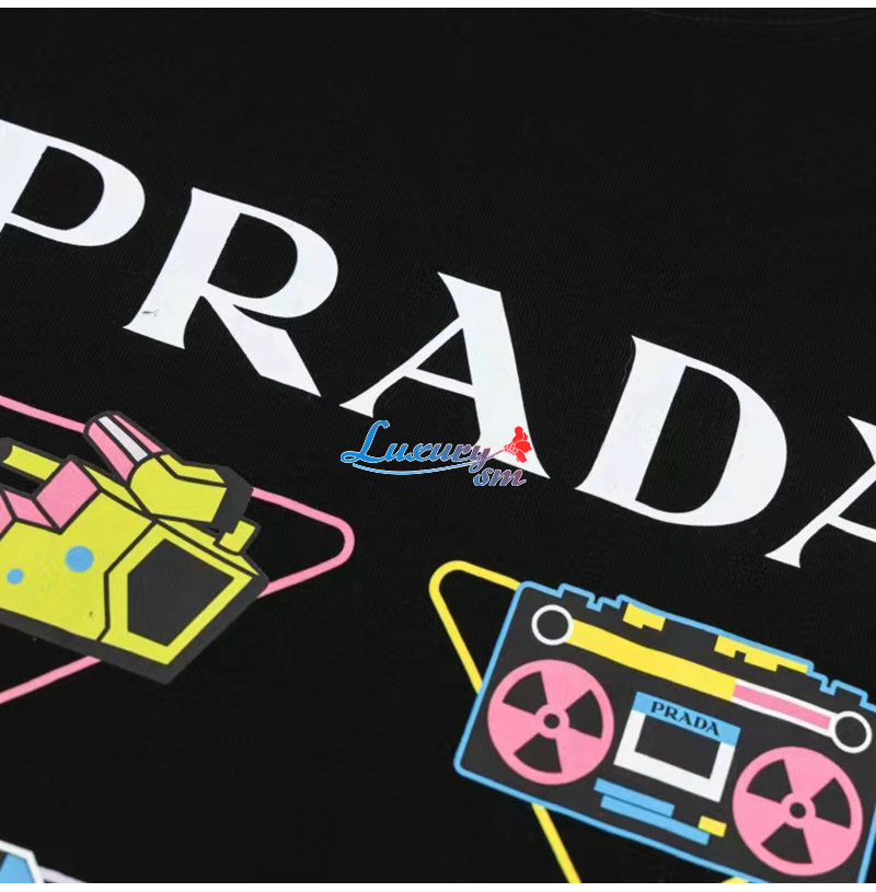 PRADA-07298 프라다 블랙 프린트 장식 티셔츠 남여공용