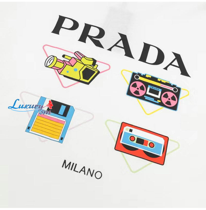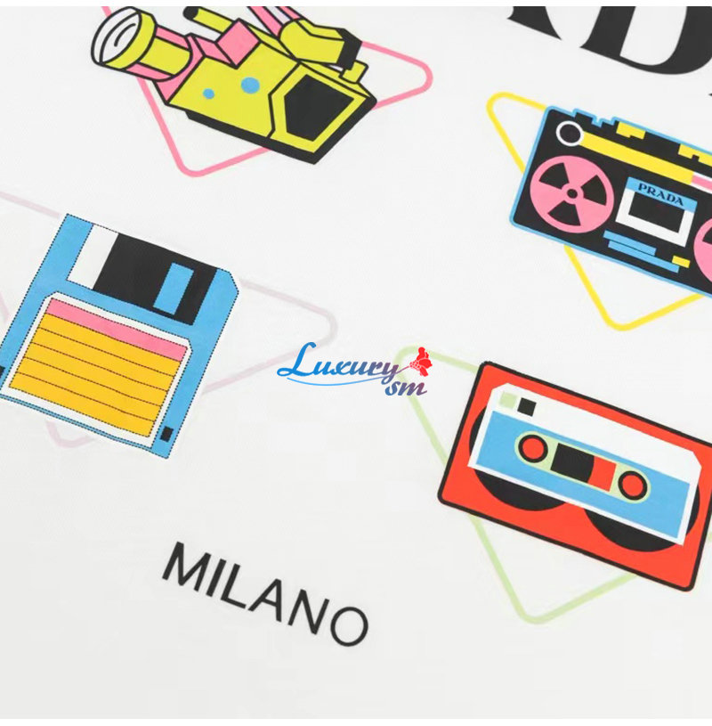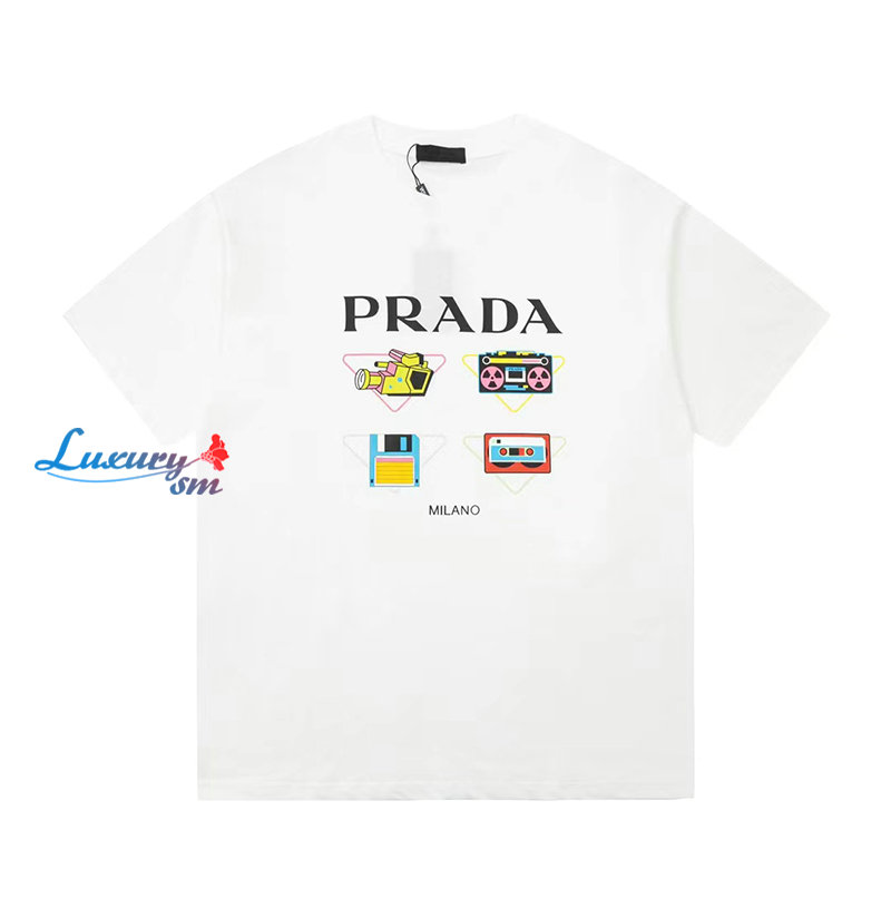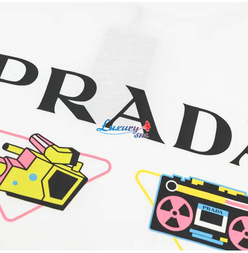 PRADA-07299 프라다 화이트 프린트 장식 티셔츠 남여공용