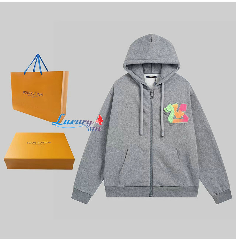 LOUIS VUITTON-07298 루이비통 그레이 아플리케 장식 후드 재킷 남여공용