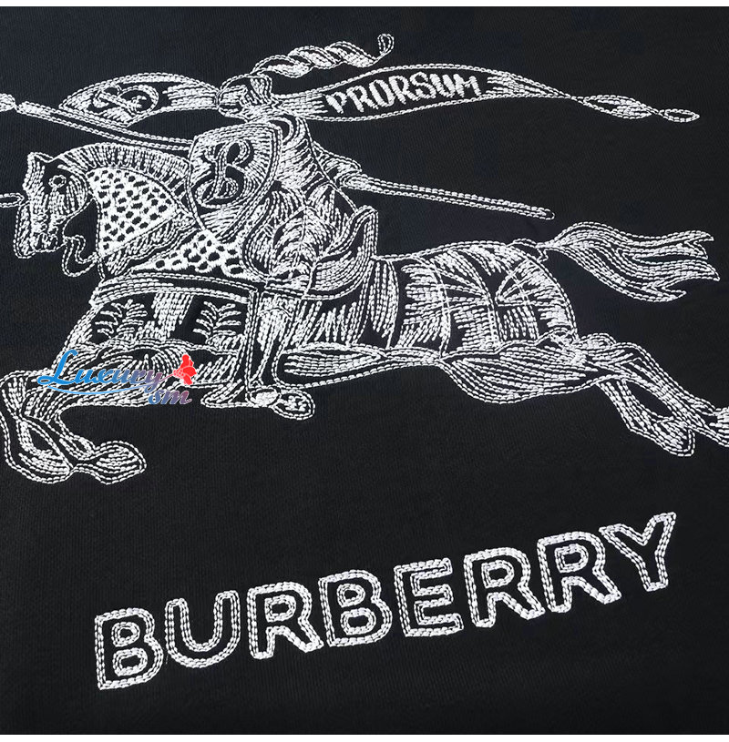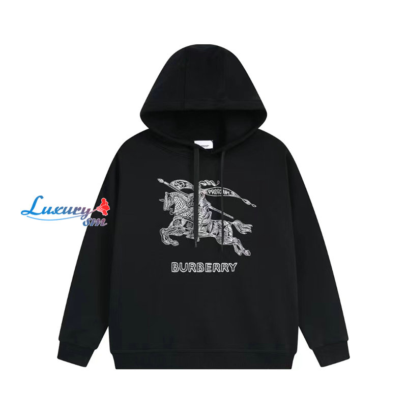 BURBERRY-07244 버버리 블랙 아플리케 장식 후드 티셔츠 남여공용