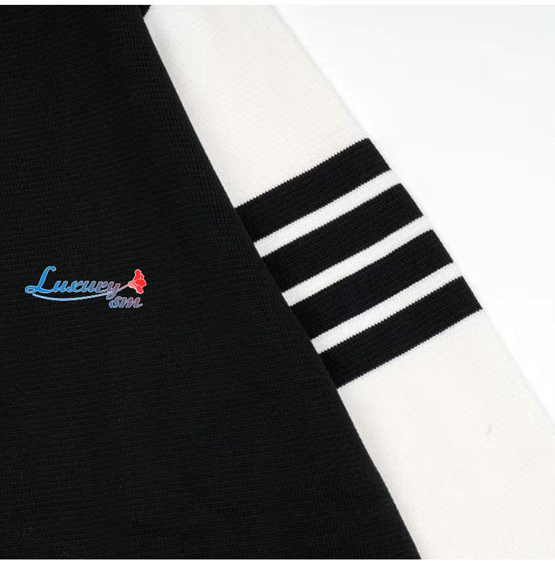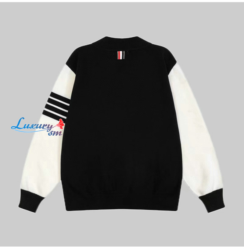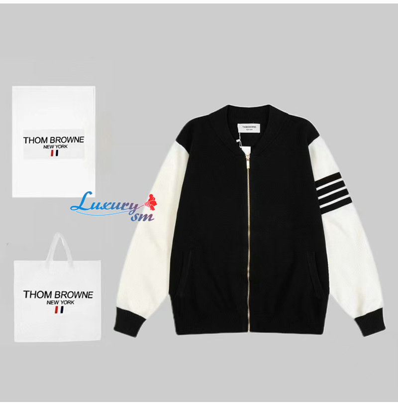 THOM BROWNE-081410 톰 브라운 화이트/블랙 니트 코튼 베이스볼 재킷 남성용