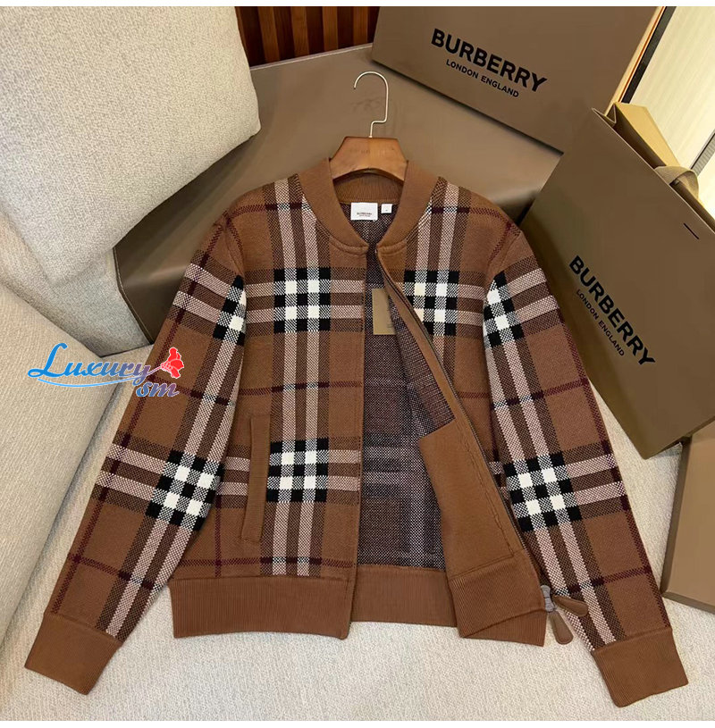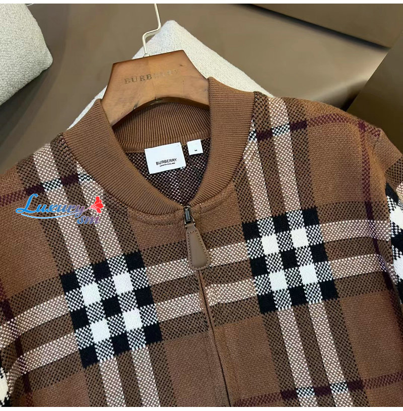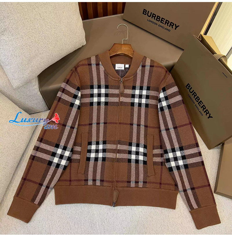 BURBERRY-08227 버버리 브라운 체크 무늬 니트 재킷 남성용
