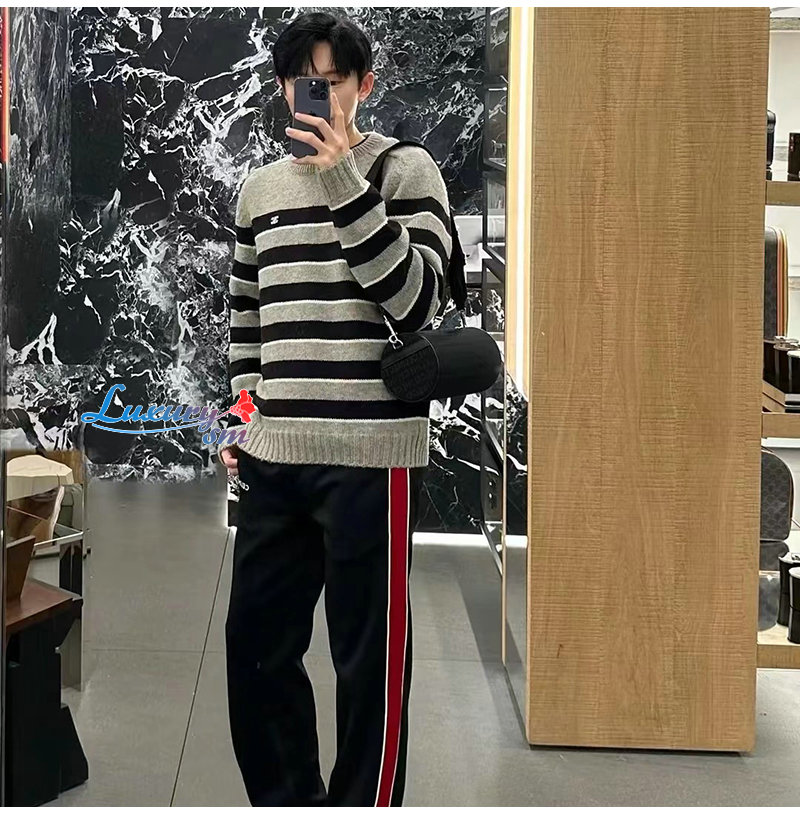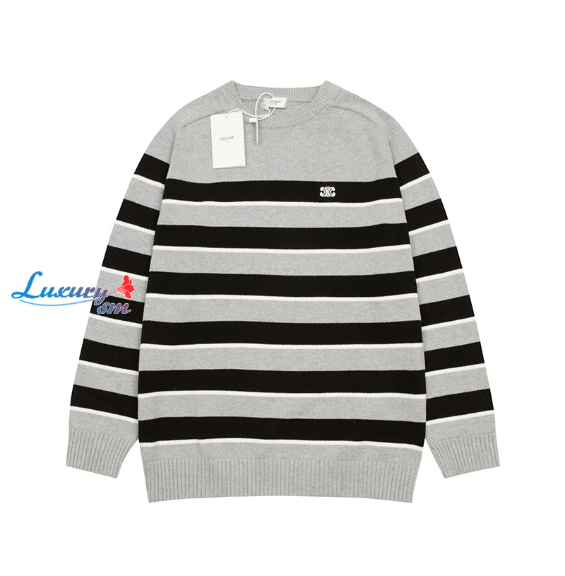 CELINE-08245 셀린느 그레이/블랙 스트라이프 장식 스웨터 남여공용