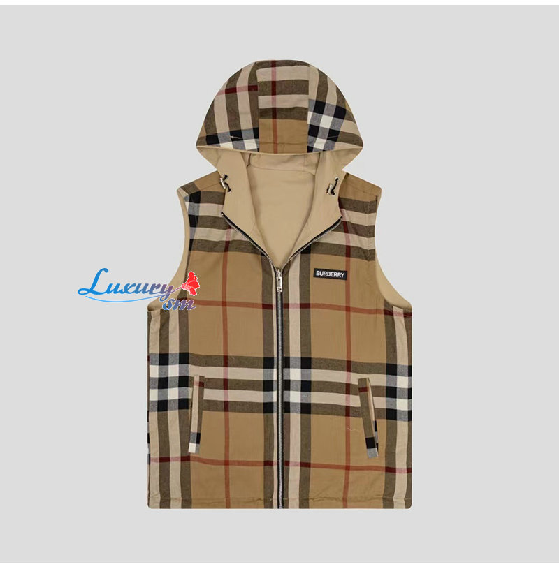 BURBERRY-08296 버버리 베이지 체크 무늬 양면 바람막이 조끼 남성용