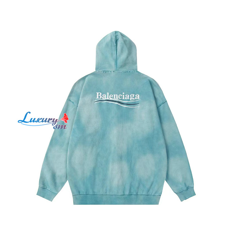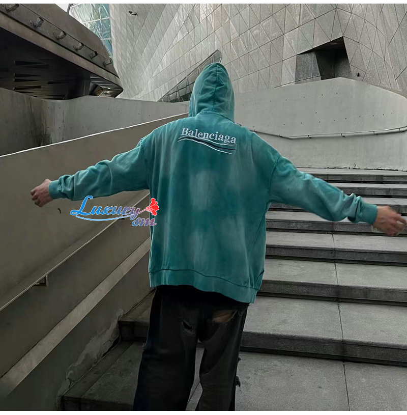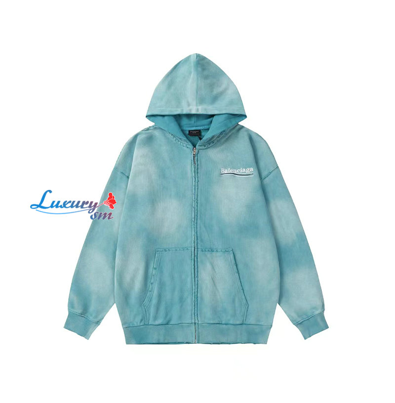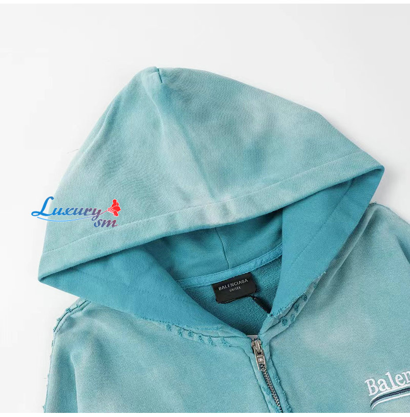BALENCIAGA-09031 발렌시아가 블루 아플리케 장식 워싱 빈티지 후드 재킷 남여공용