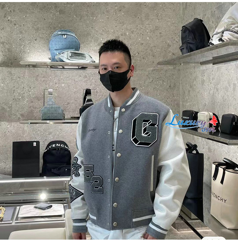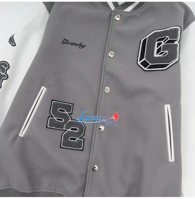 GIVENCHY-09046 지방시 그레이 아플리케 장식 베이스볼 재킷 남여공용