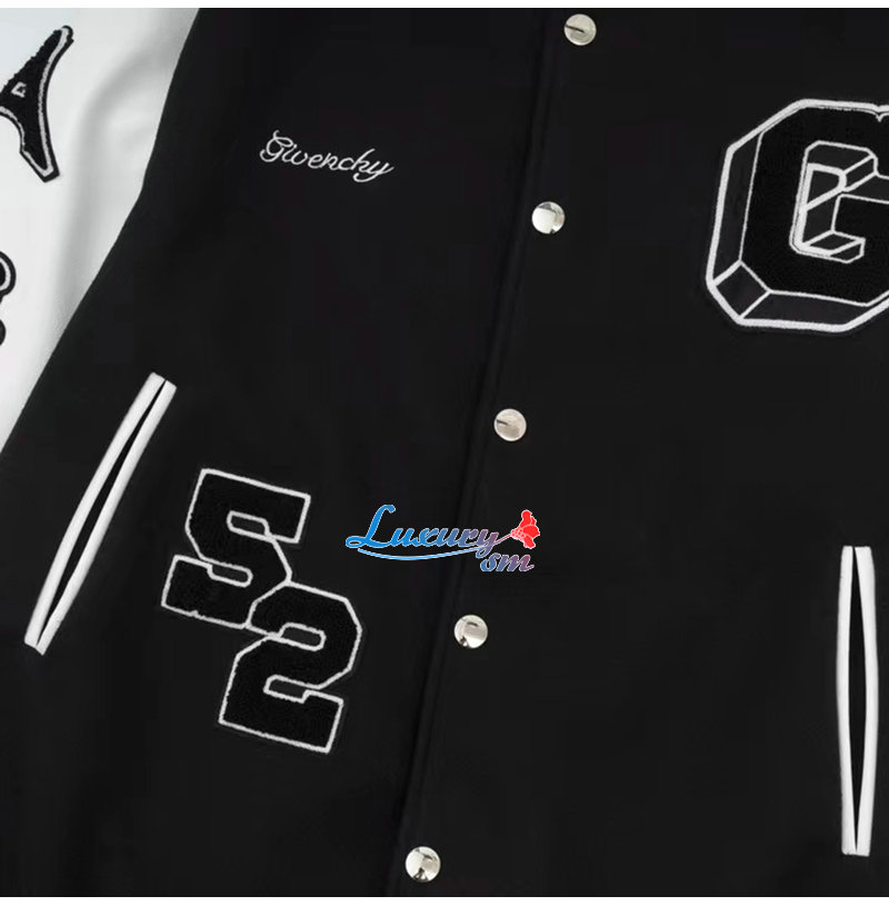 GIVENCHY-09047 지방시 블랙 아플리케 장식 베이스볼 재킷 남여공용