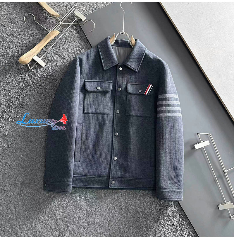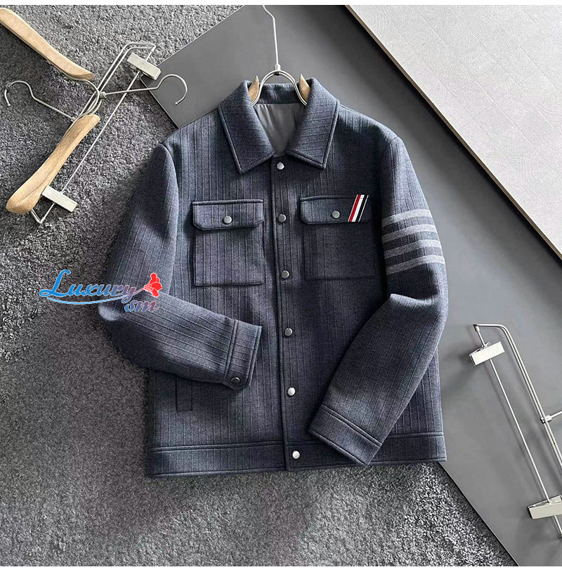 THOM BROWNE-092110 톰 브라운 그레이 스트라이프 장식 재킷 남여공용